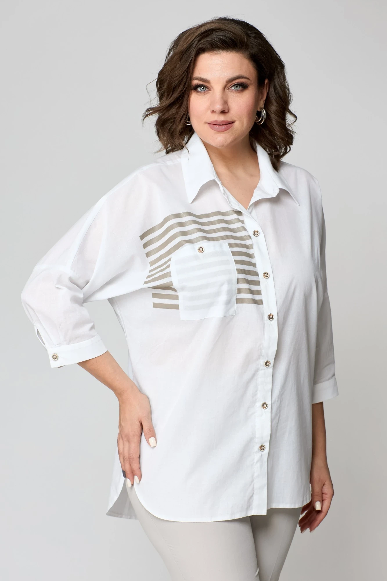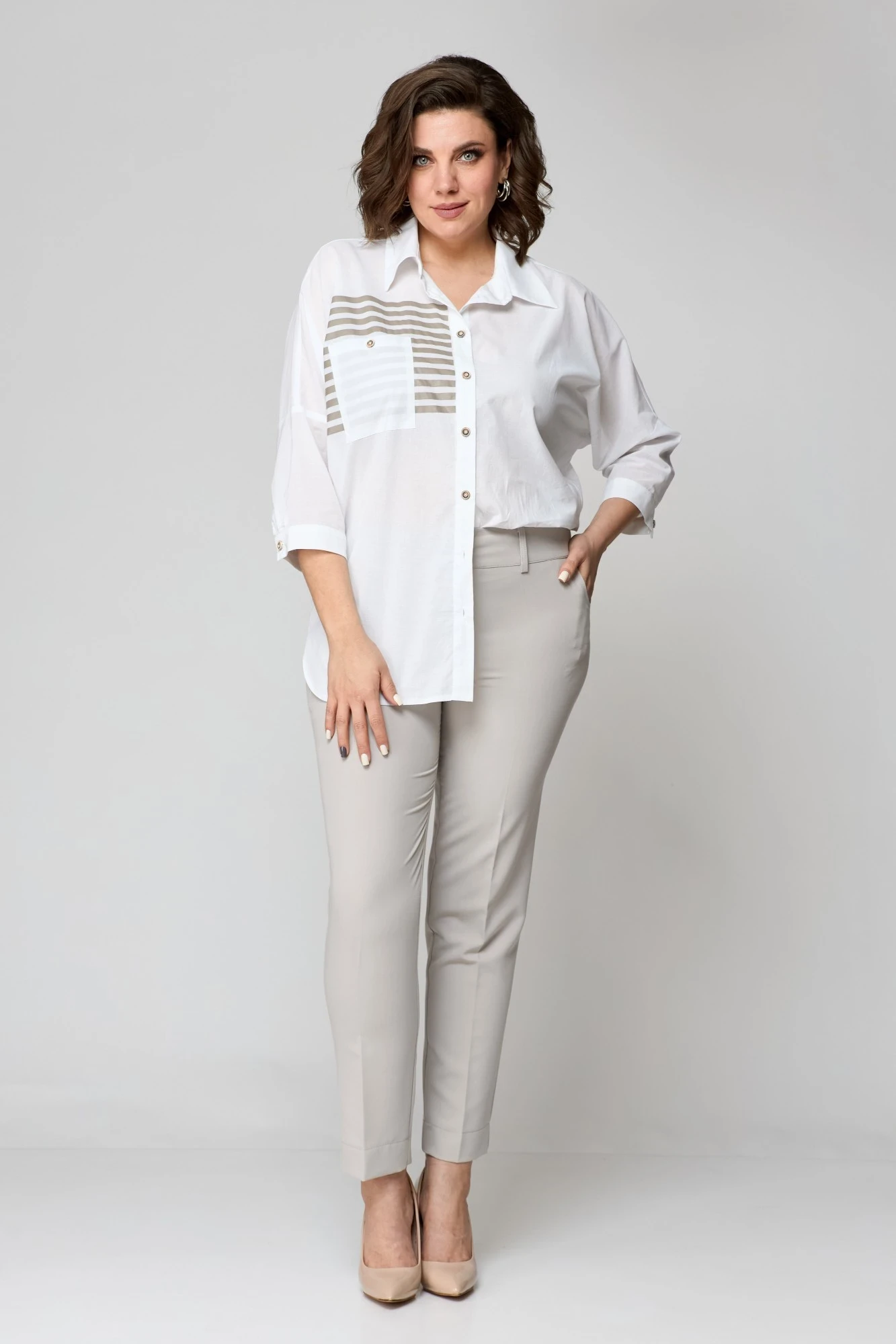 Брючный костюм SolomeaLux 931в белый+бежевый двойка