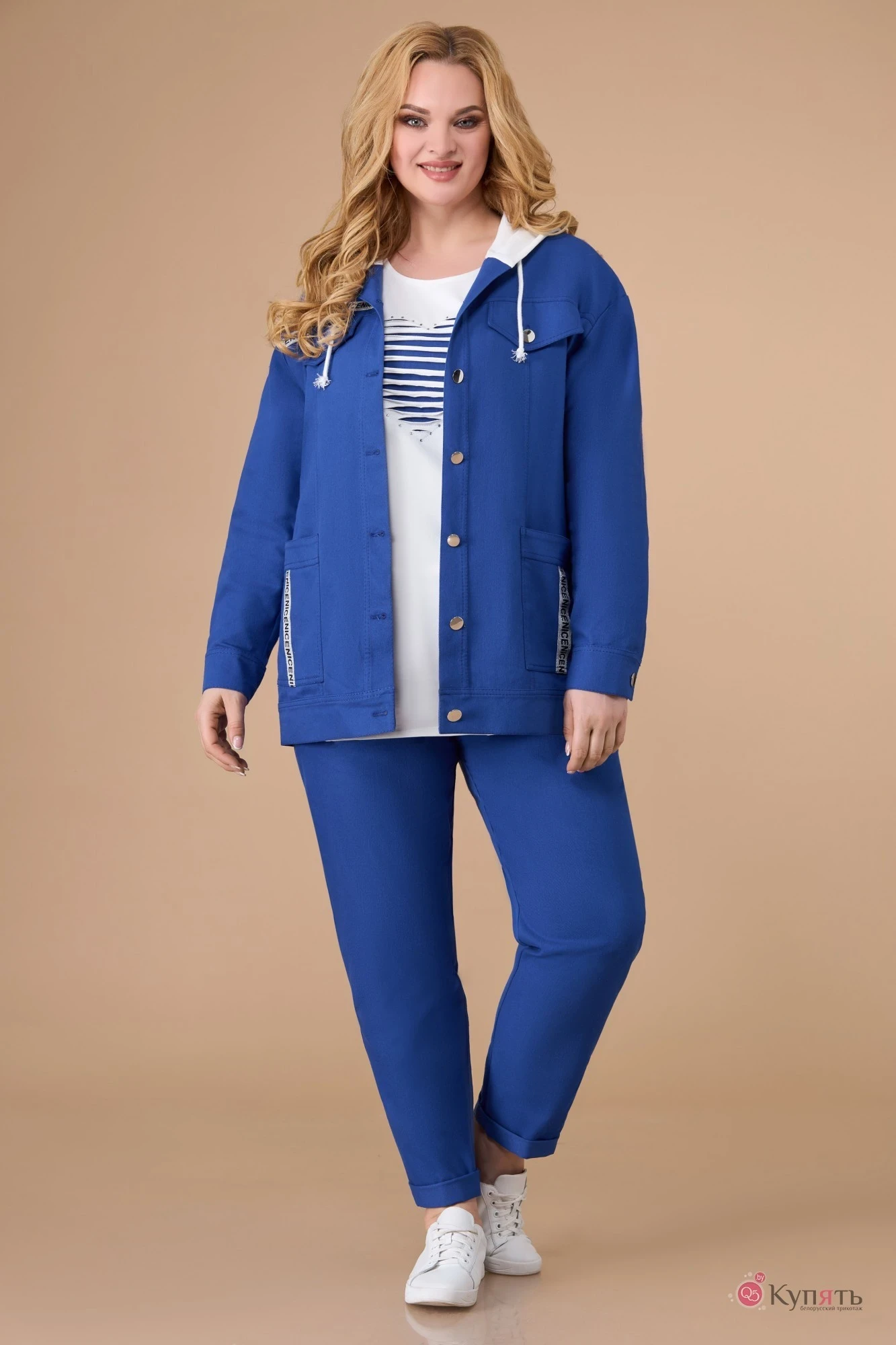 Куртка прямого силуэта. Линия плеча спущена. Куртка с центральной бортовой застежкой с планкой на 6 петель и пуговиц. Полочки куртки с горизонтальными кокетками и вертикальными рельефами от кокеток. В швах притачивания кокеток декоративные клапана, застегивающиеся на петлю и пуговицу. В нижней части куртки по полочкам большие накладные карманы. Спинка с горизонтальной кокеткой и вертикальными рельефами от шва кокетки до низа. Рукав длинный на притачной манжете. По горловине капюшон.