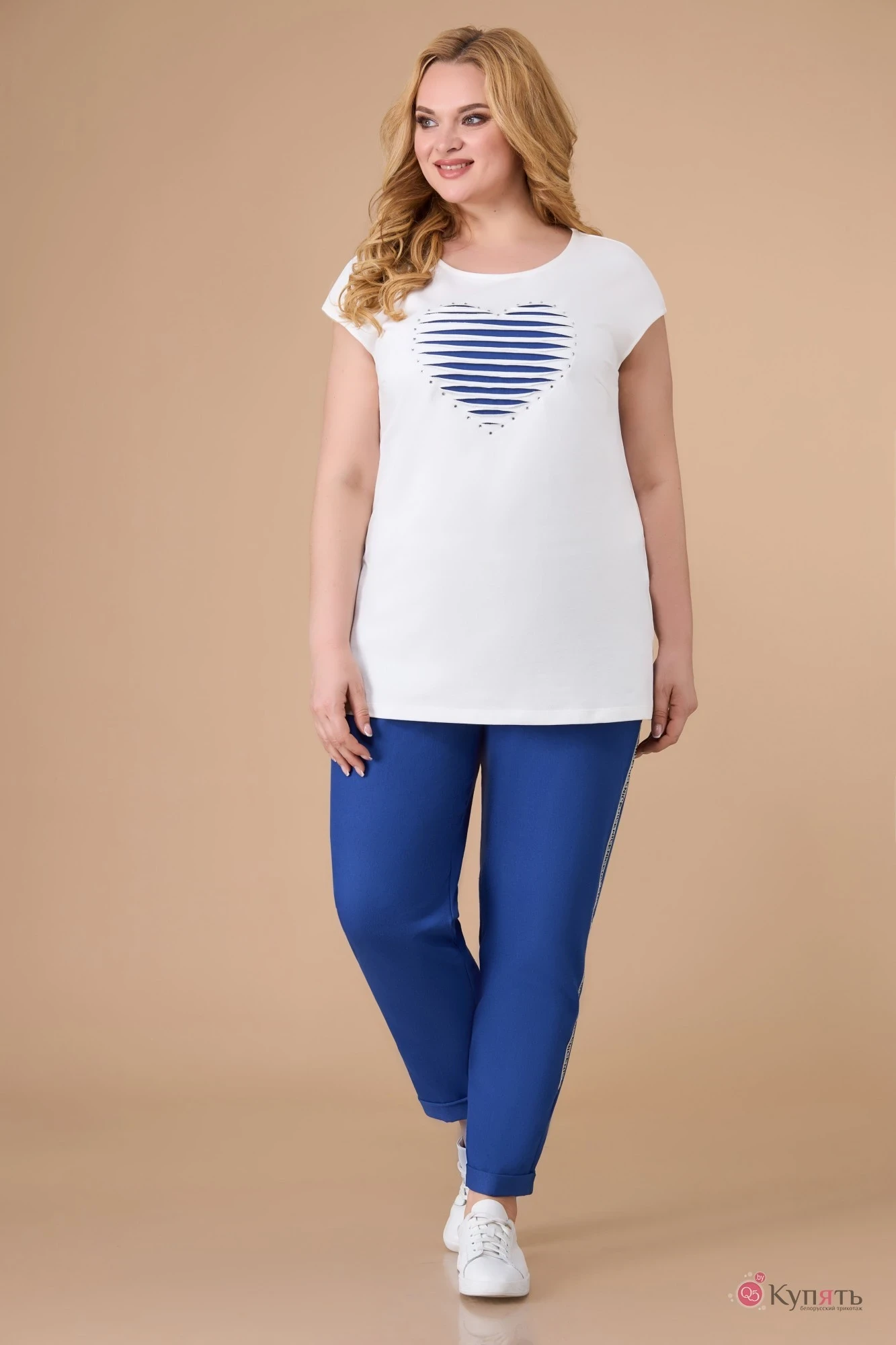Брюки заужены книзу. Передние детали брюк с отрезными боковыми частями, в которых обработаны карманы. На задних деталях брюк обработаны накладные карманы. Пояс притачной на резинке по кругу.
