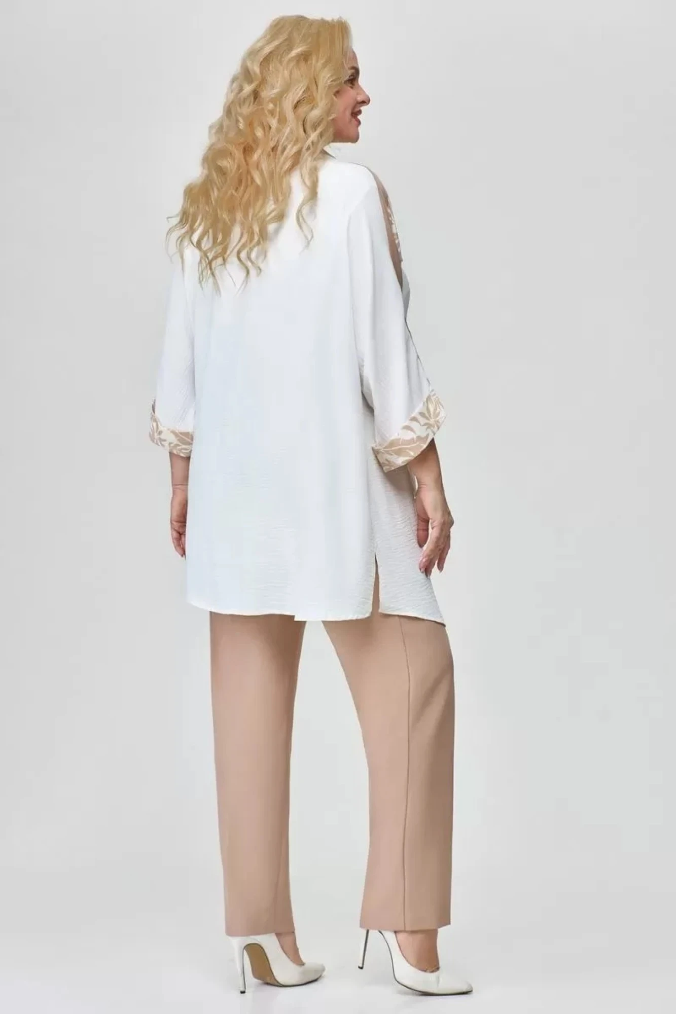 Топ комбинированный из двух тканей. По линии груди выточки. В боковых швах разрезы.