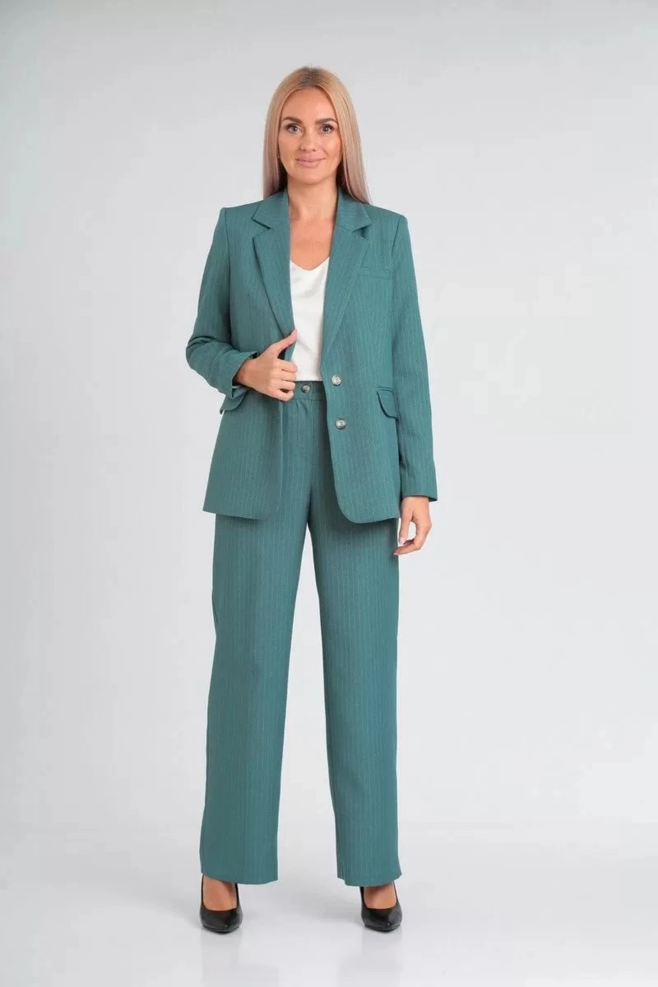 Брючный костюм Такка плюс 23-206 полоска зелень двойка