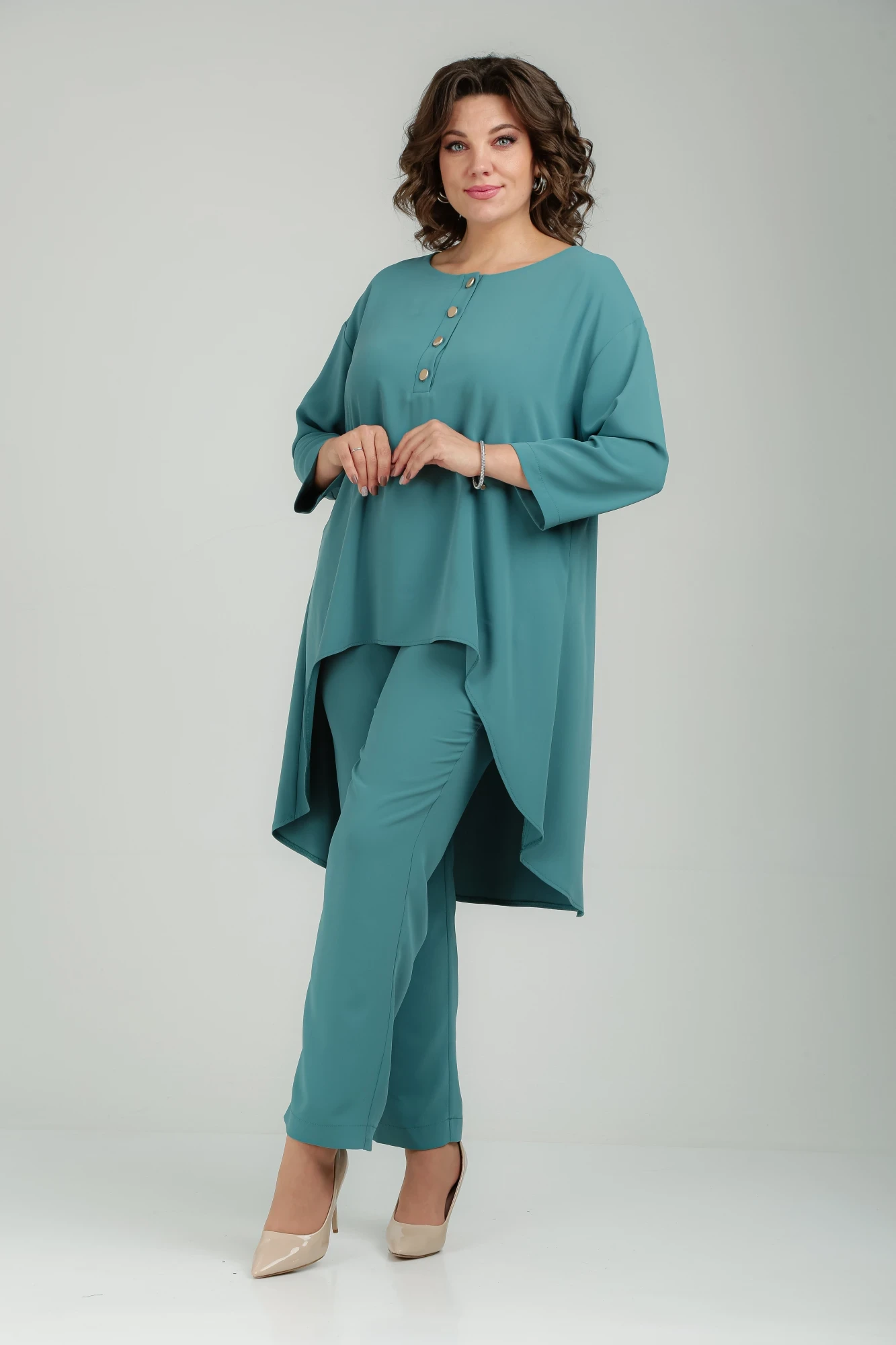 Туника свободного силуэта со спущенной линией плеча и разноуровневой линией низа. Перед в области груди с планкой и застежкой на петли и пуговицы. Рукав втачной одношовный. Вырез горловины типа «лодочка».