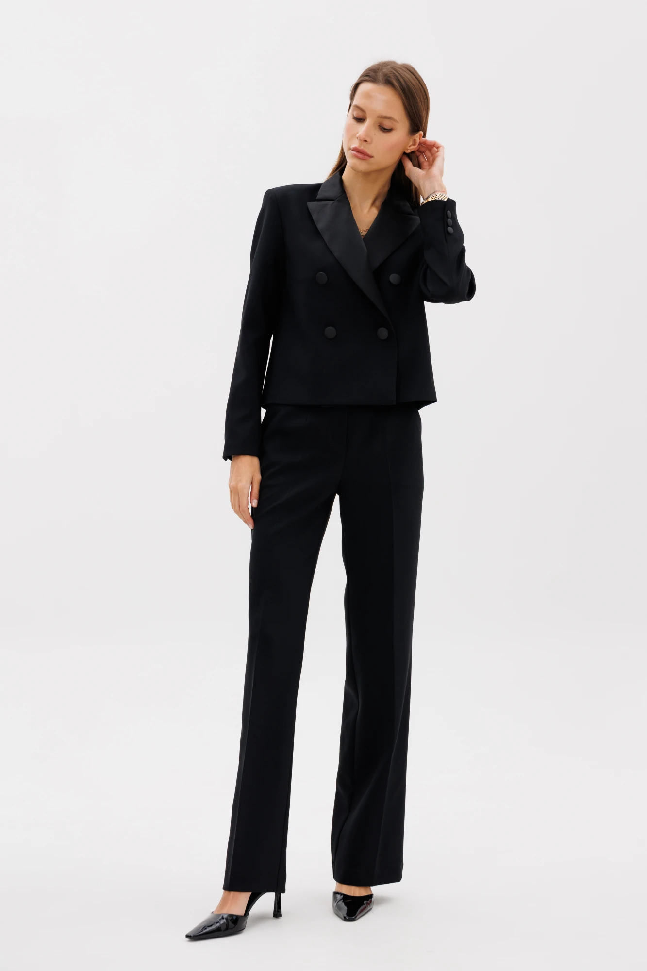 Стильные женские брюки прямого кроя. Пояс притачной, выполнен из плотной матовой, атласной ткани, брюк со шлевками. Застегиваются на молнию и потайной крючок. Карманы - боковые наклонные.