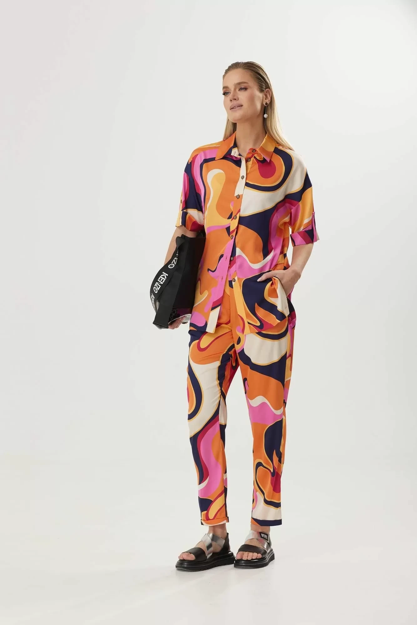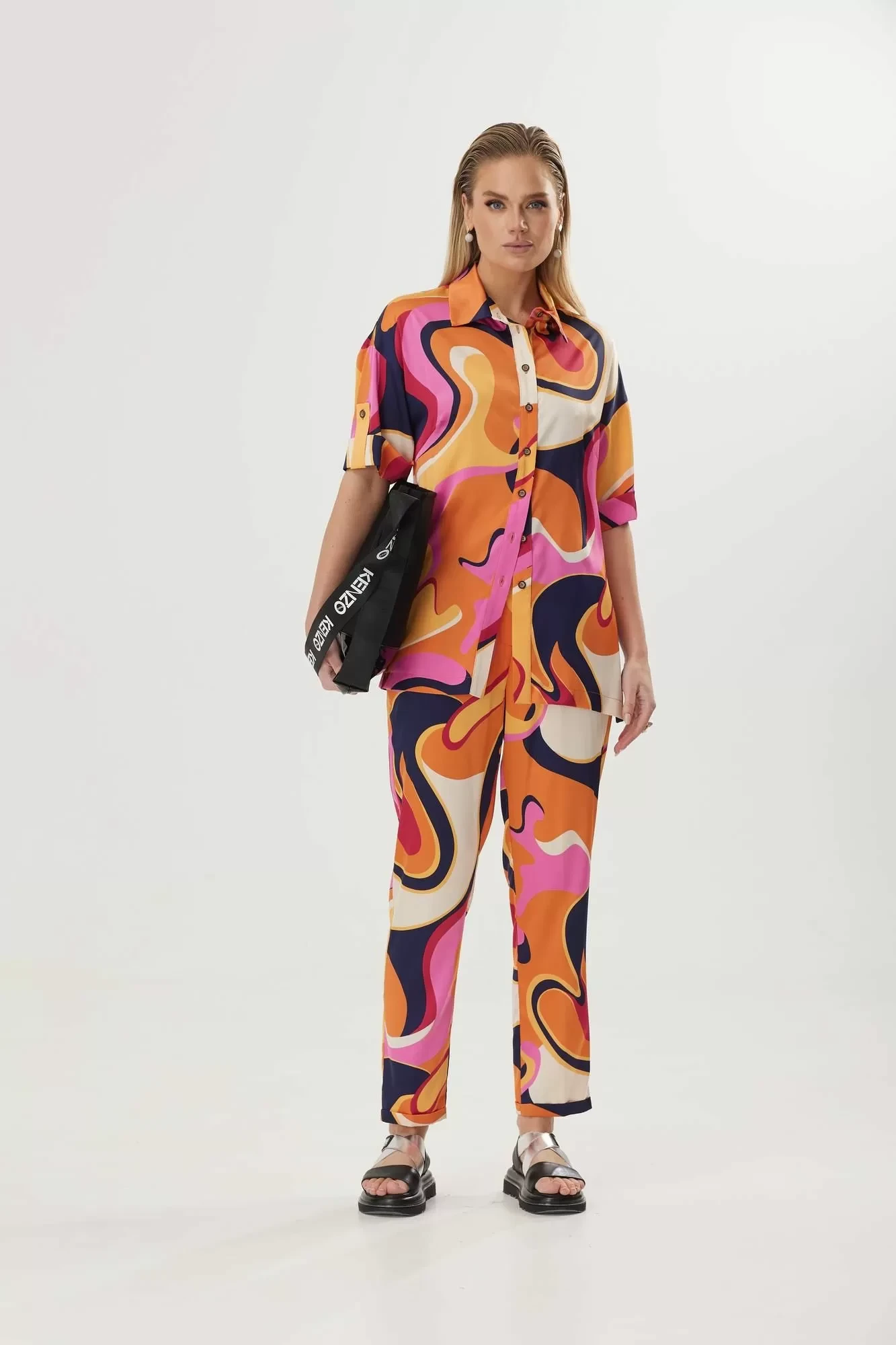 Брючный костюм Твой Имидж 1579-1 оранжевый мультиколор двойка