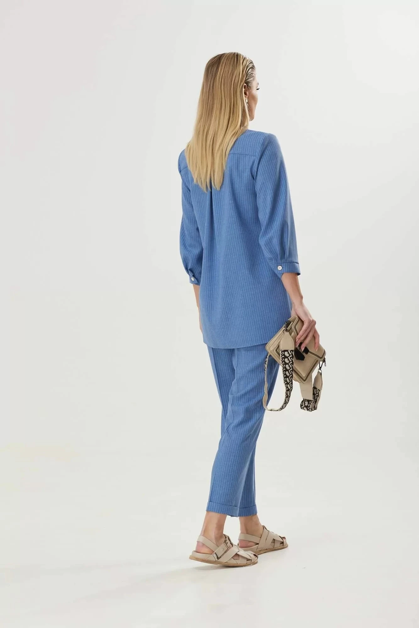 Костюм в полоску можно сочетать с различными аксессуарами и обувью, что позволяет создавать разнообразные образы. Для делового стиля можно выбрать классические туфли на невысоком каблуке и сумку среднего размера. Если же желаете создать более кокетливый образ, то можно выбрать модные босоножки с высоким каблуком и яркую сумочку.