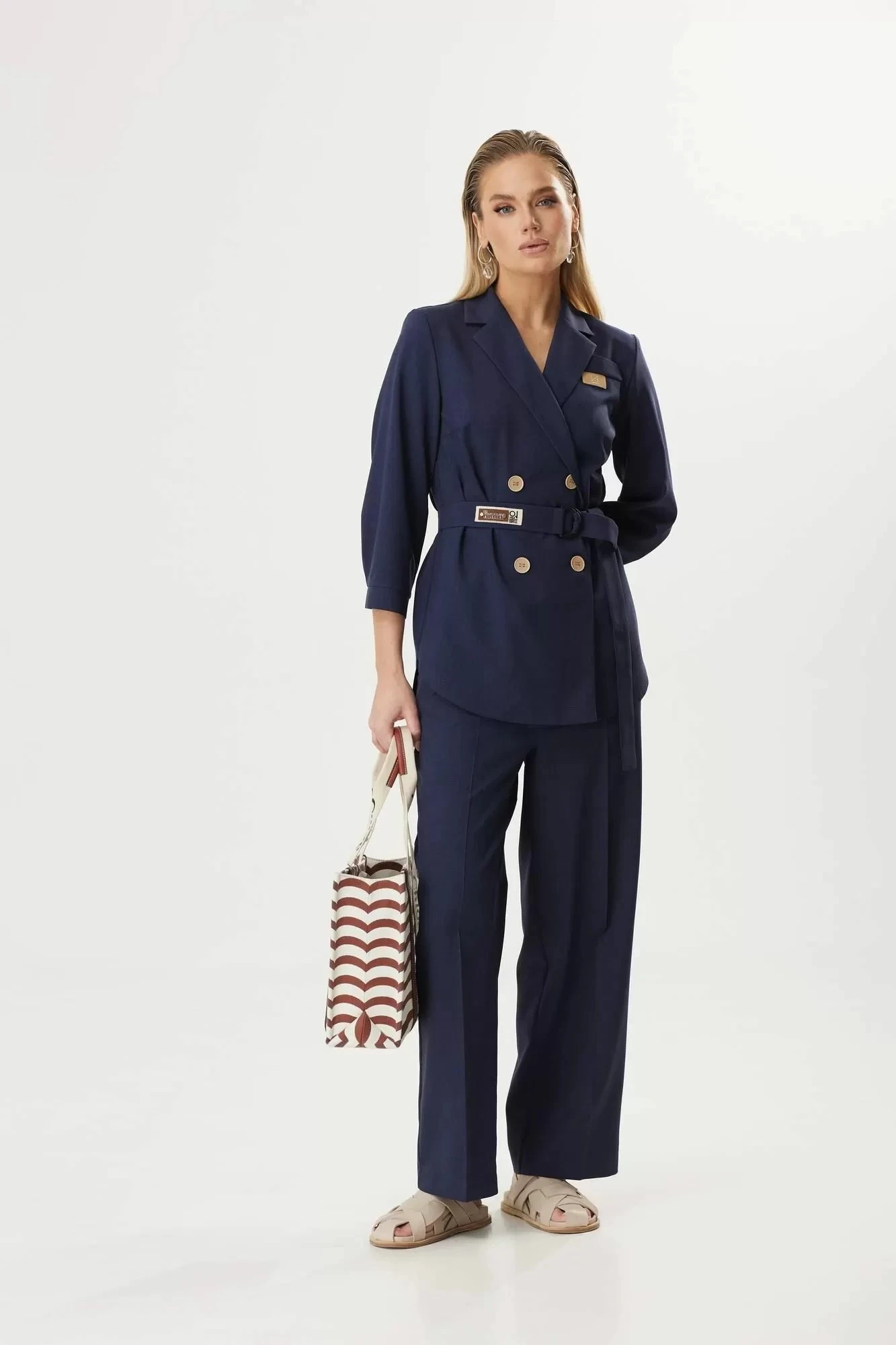 Костюм с широкими штанами идеально сочетается с различными типами верха и аксессуарами, что позволяет создавать уникальные образы для разных ситуаций – от повседневных деловых встреч до праздничных мероприятий.