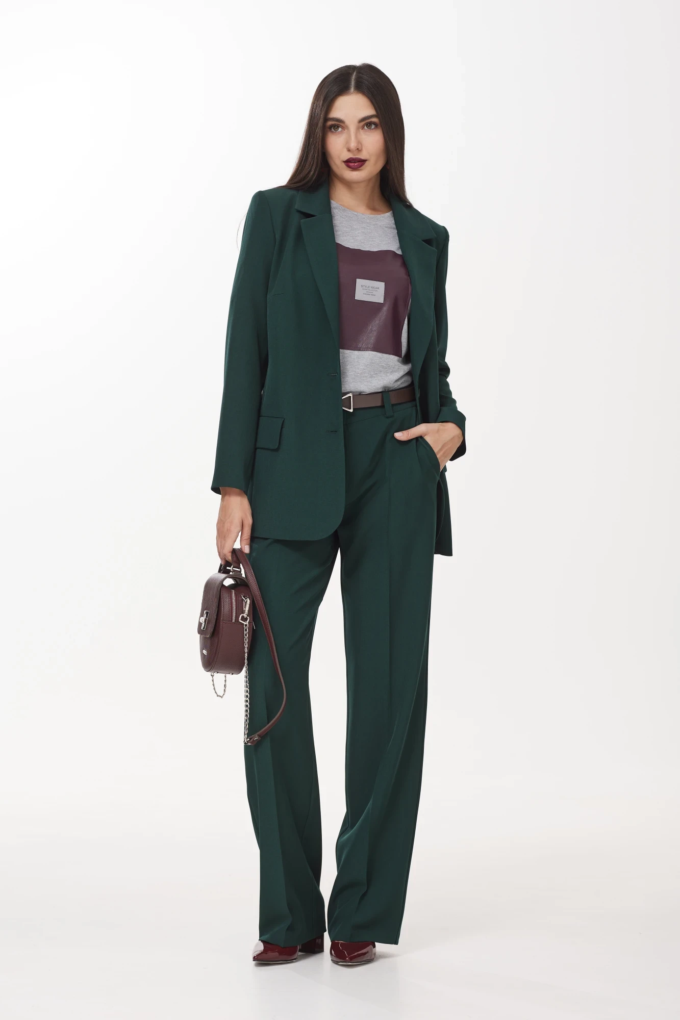 Брючный костюм Твой Имидж 1974 бутылочная зелень тройка