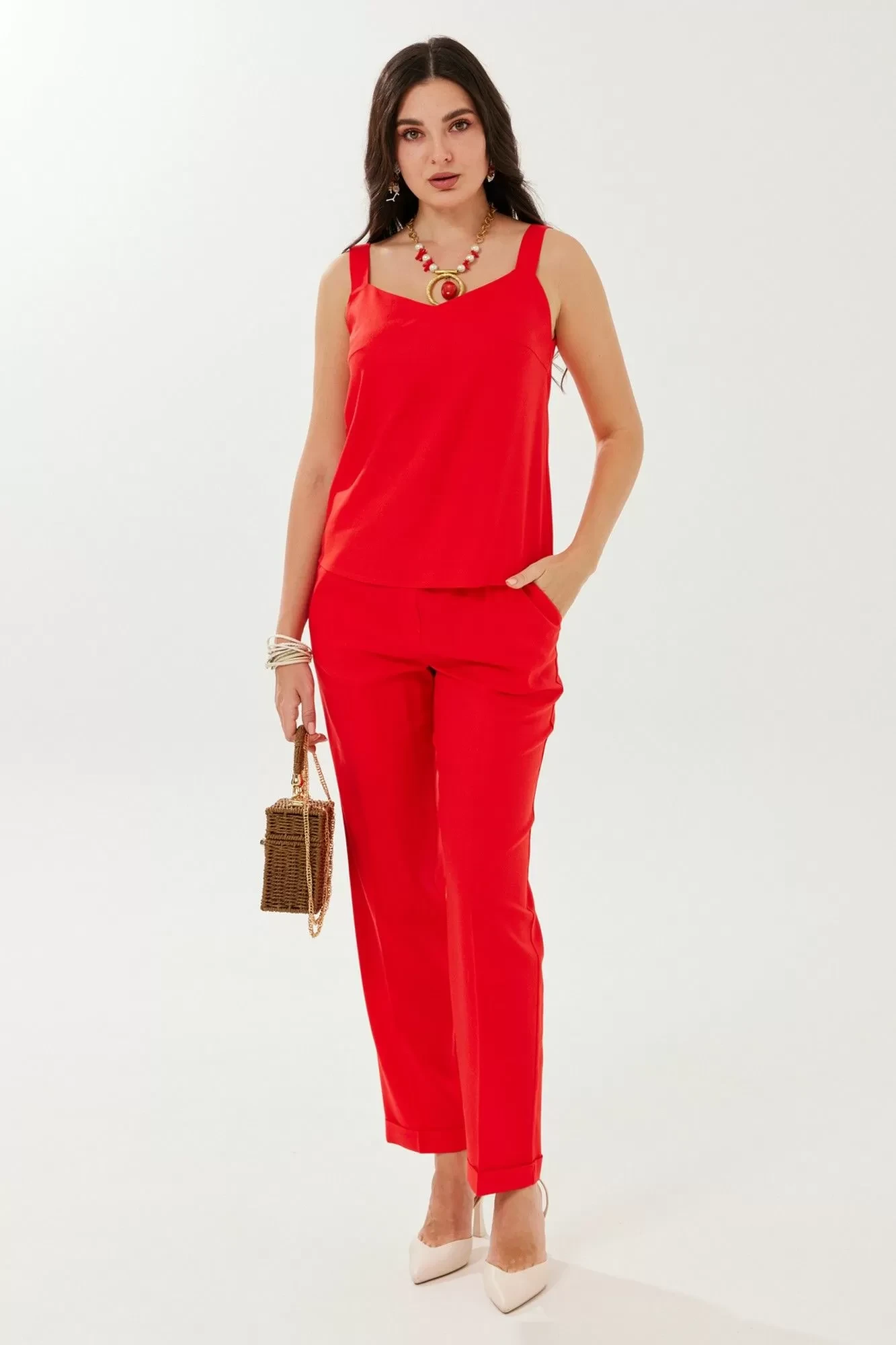 Брючный костюм Твой Имидж 2145 красный тройка