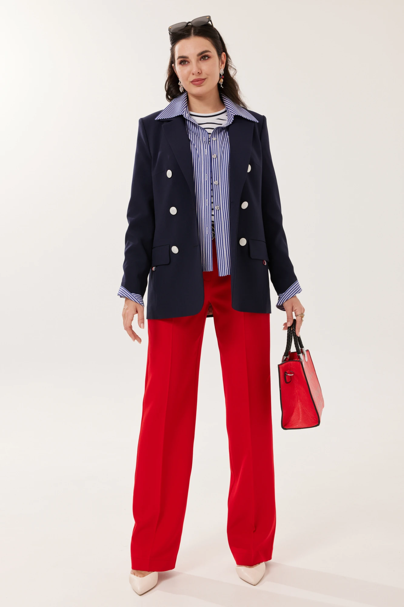 Брючный костюм Твой Имидж 2167 синий - красный тройка