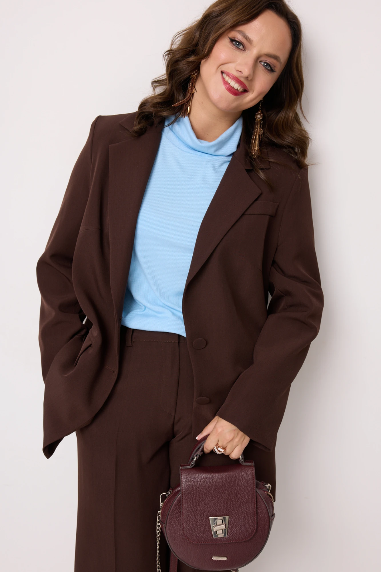 Брючный костюм Твой Имидж 2235 шоколад - голубой тройка