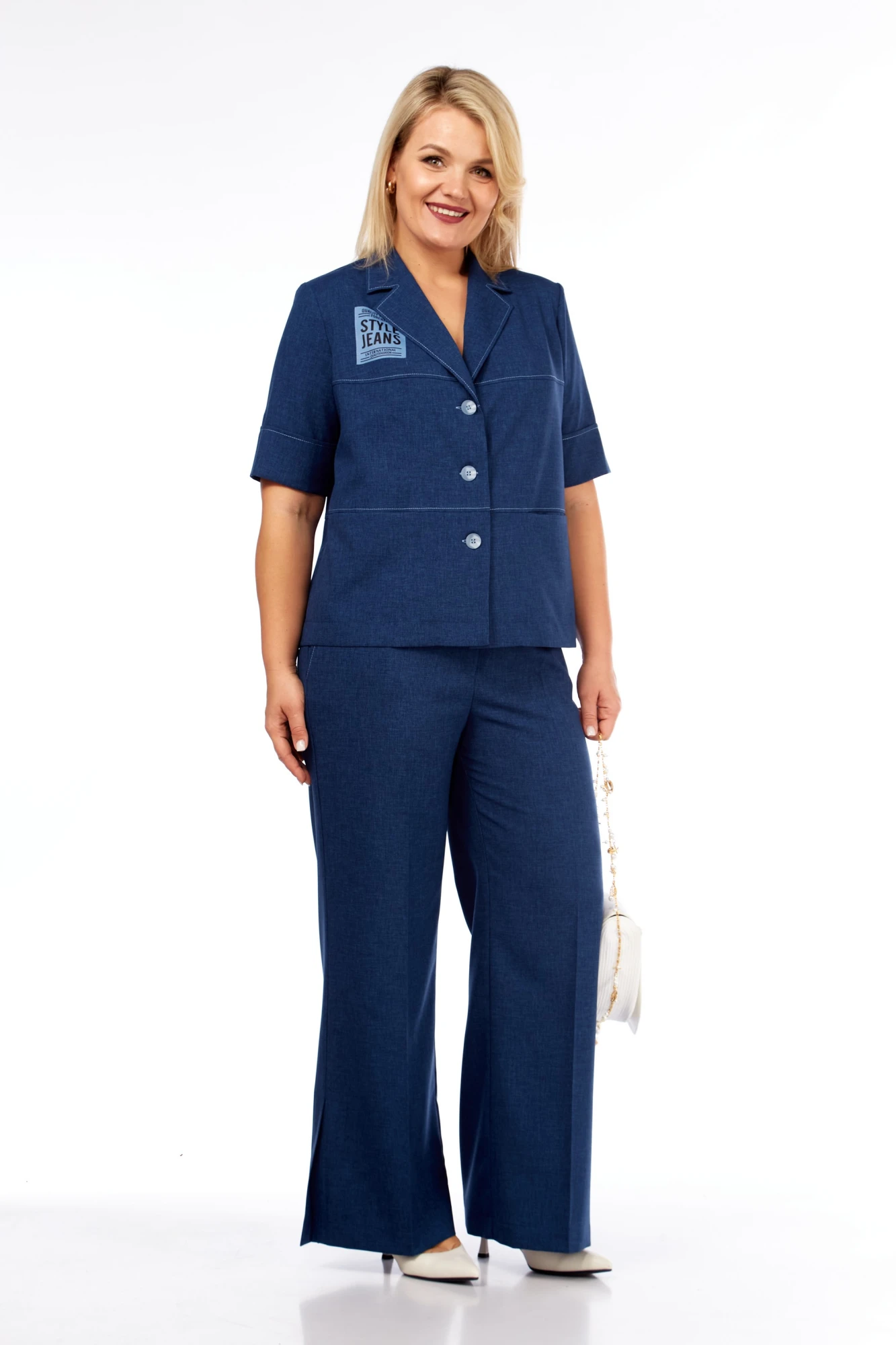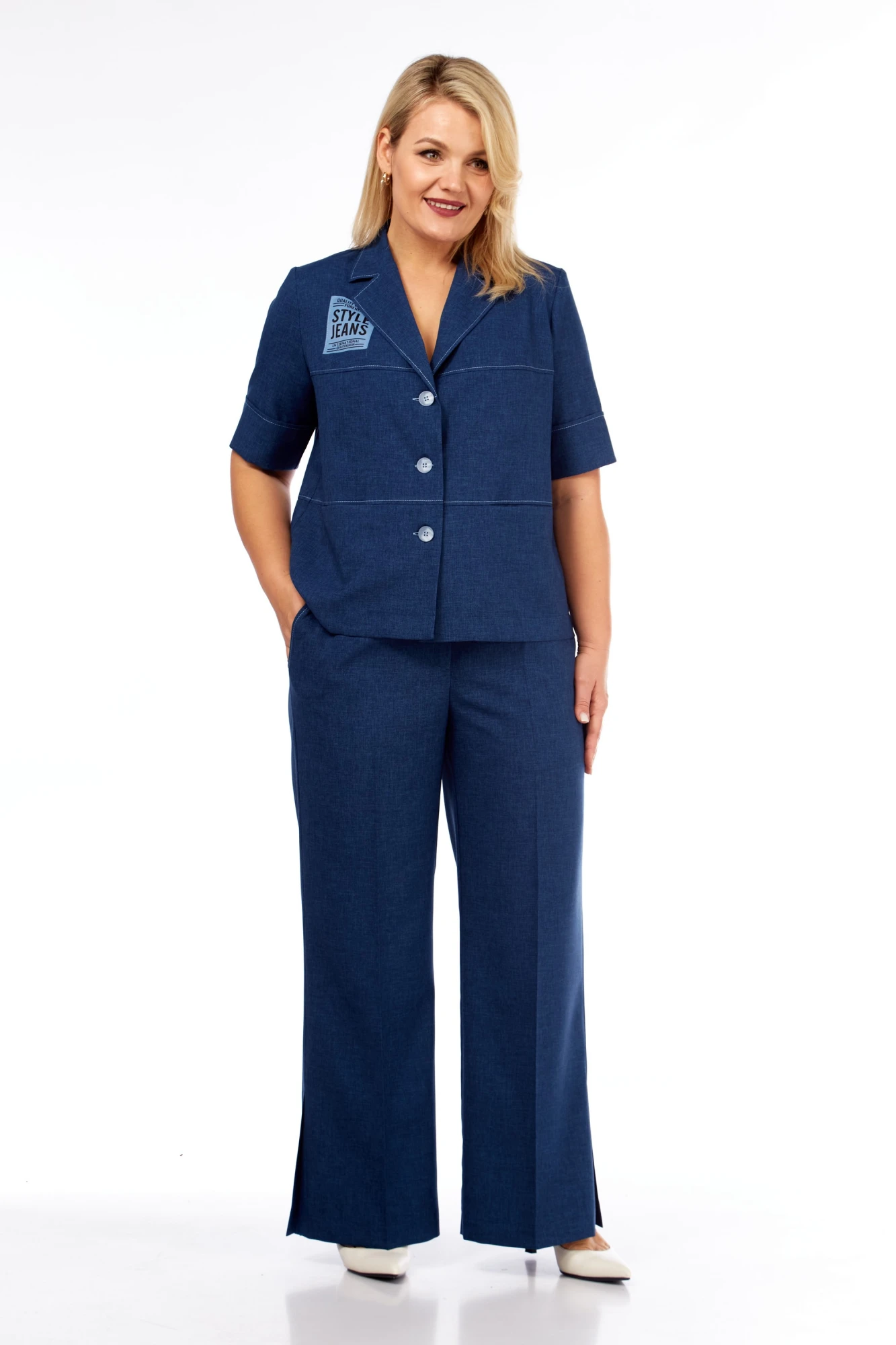 Брючный костюм Vilena Fashion 1083 синий меланж двойка