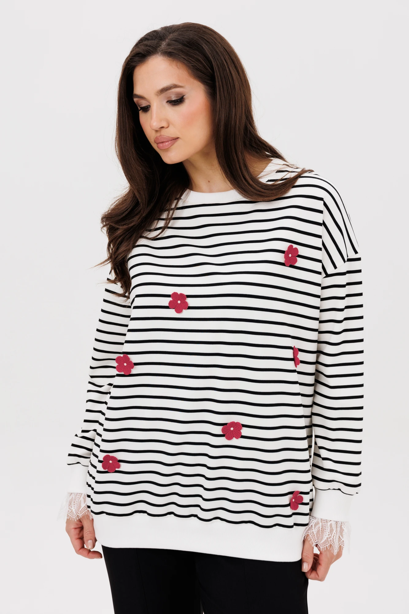 Брючный костюм Vilena Fashion 1093 двойка полоска_красный
