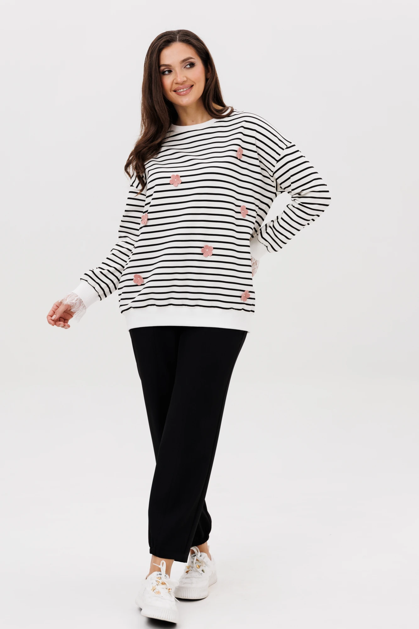 Брючный костюм Vilena Fashion 1093 двойка полоска_розовый