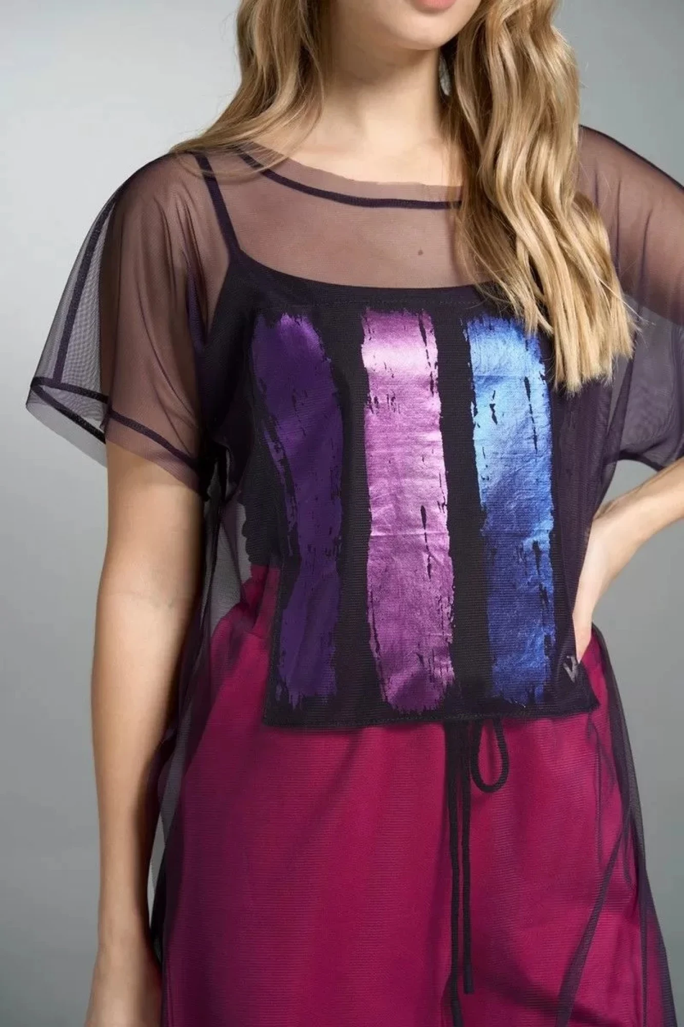 50,52В боковых швах высокие разрезы. По переду, с изнанки, настрочная деталь с декоративной авторской печатью.