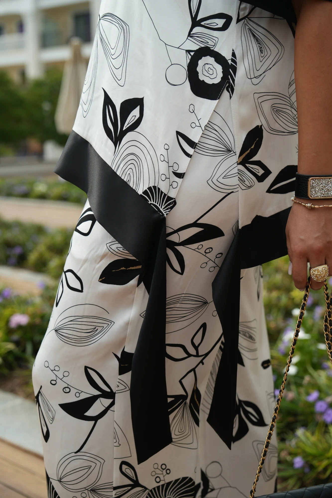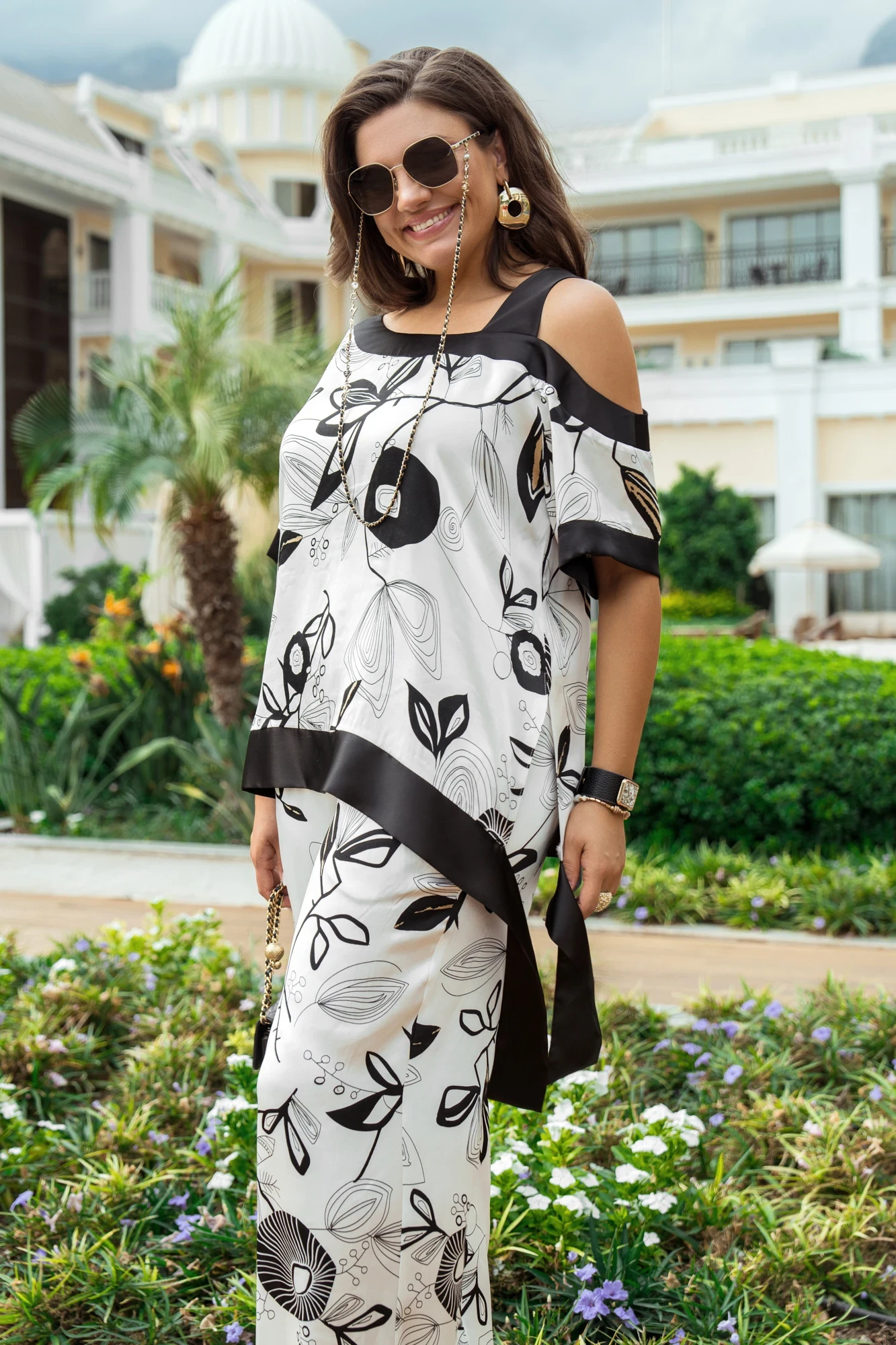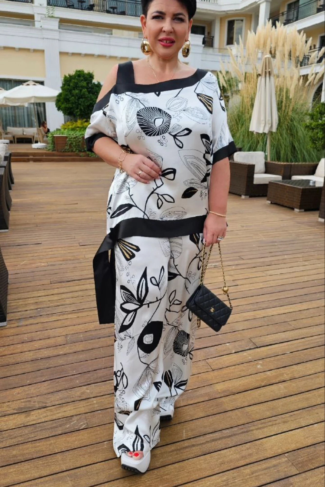 Летний брючный костюм Vittoria Queen 20693 дизайн цветы черный+белый двойка