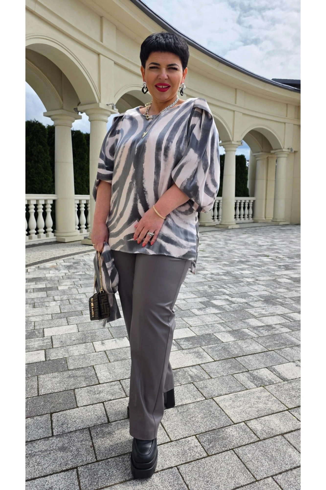 Длина блузы 76,5 см (р 50-54), 77 см (р 56-60), длина рукава 37/45 см. Длина брюк по боковому шву от пояса 98 см.