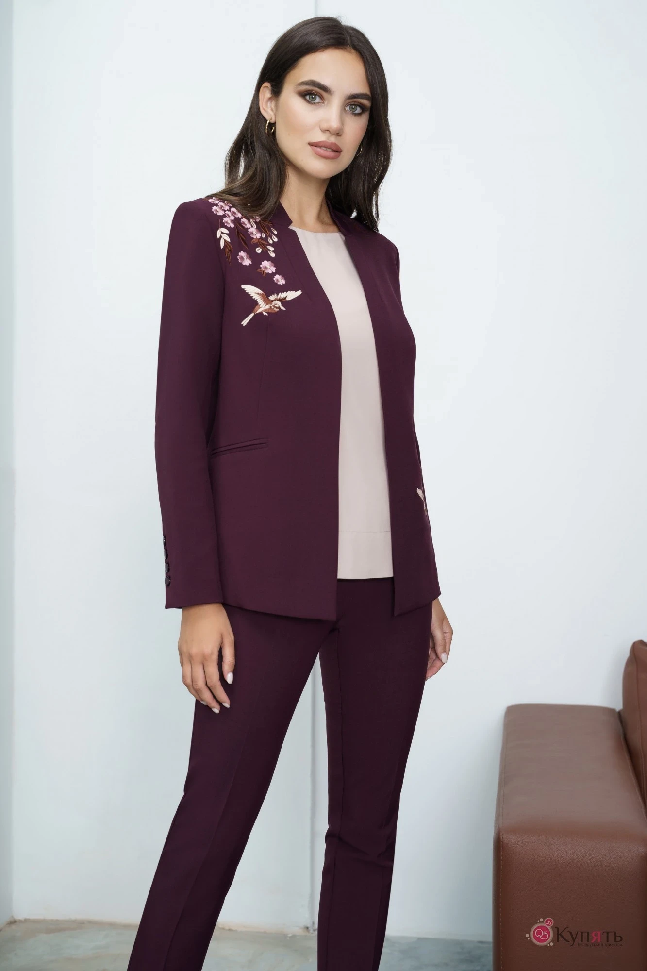44,46,48,50,52,54Жакет женский из костюмно-плательной ткани без застежки с художественной вышивкой на передних половинках (на правой половинке в верхней части, на левой вышивка расположена под карманом), на подкладке.