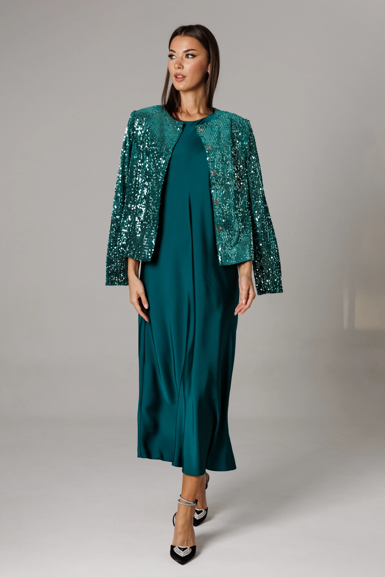Костюм с платьем Ларс Стиль 1158 оттенки_изумрудного двойка