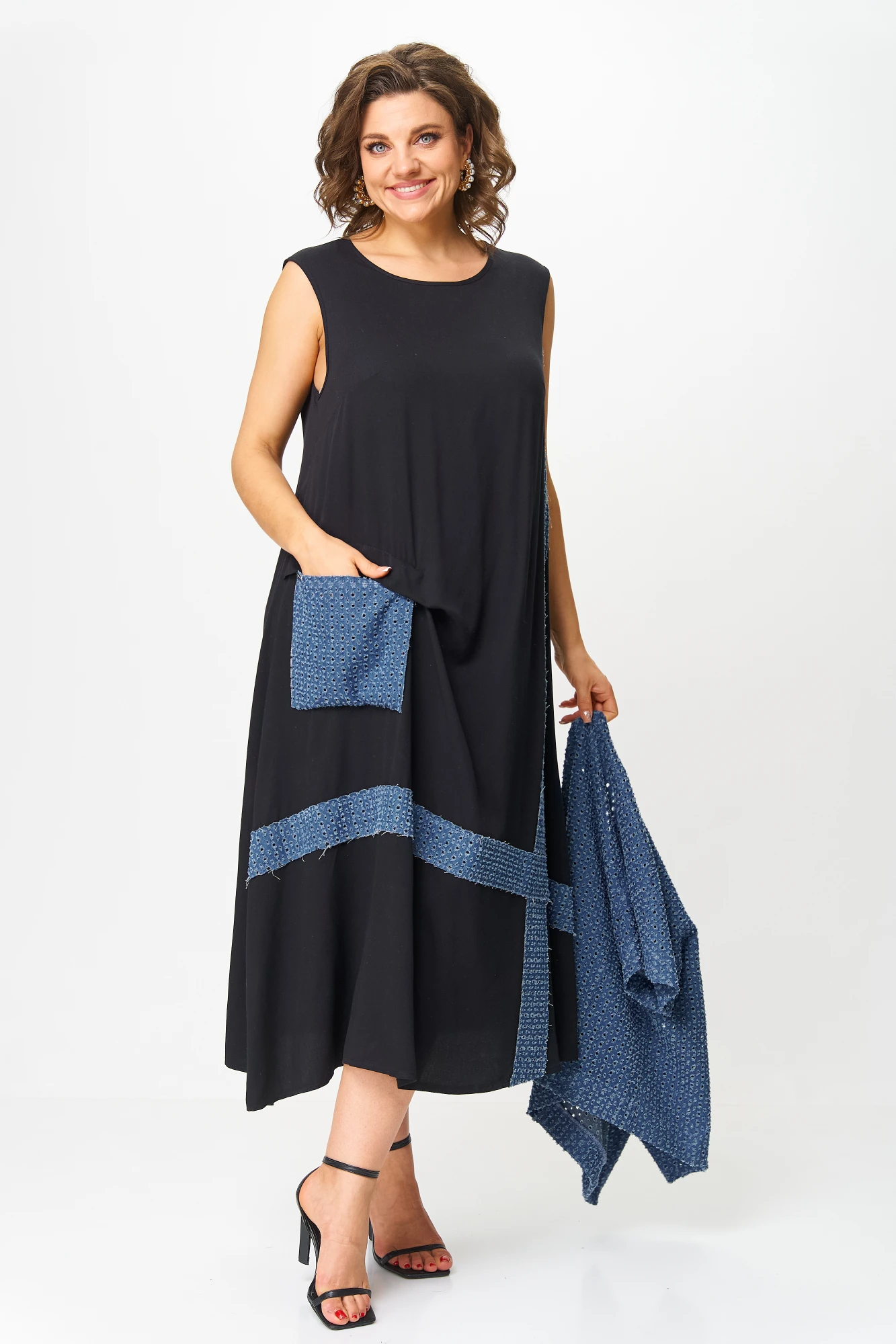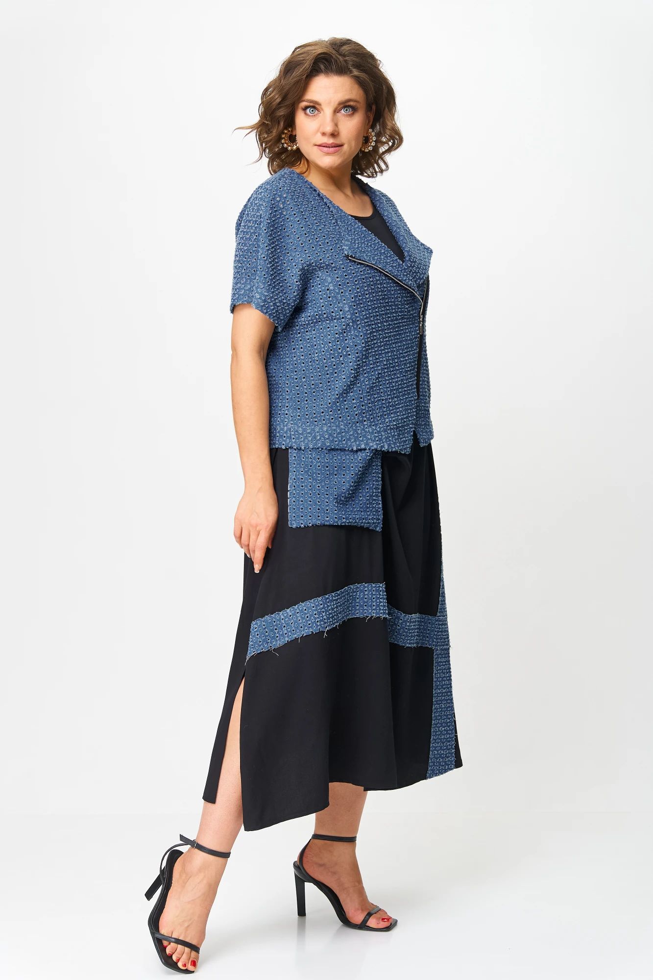 Костюм с платьем Michel Chic 1428 черный/джинс двойка