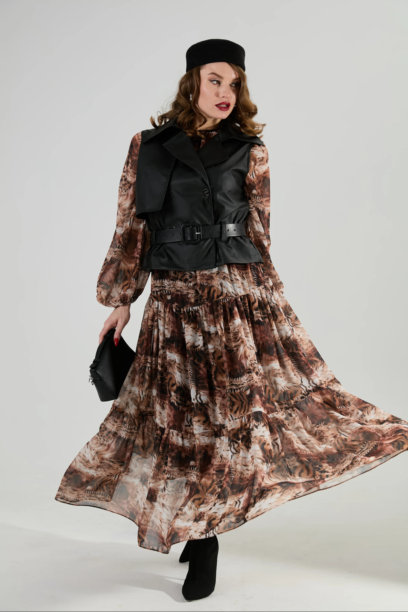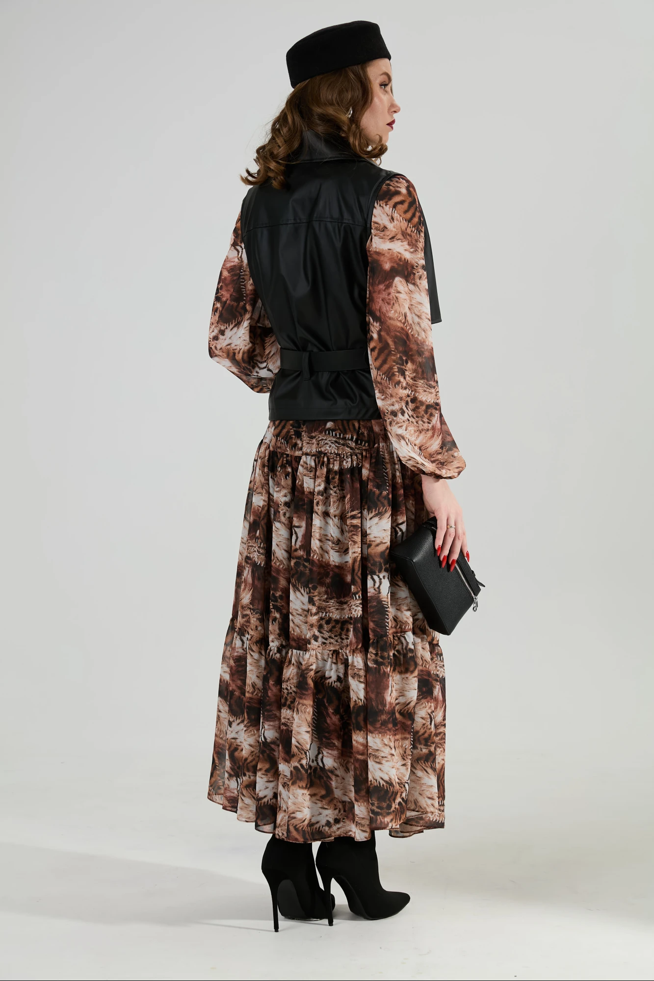 Костюм с платьем NikVa 1022-2 чёрный_и_тигровая_абстракция тройка