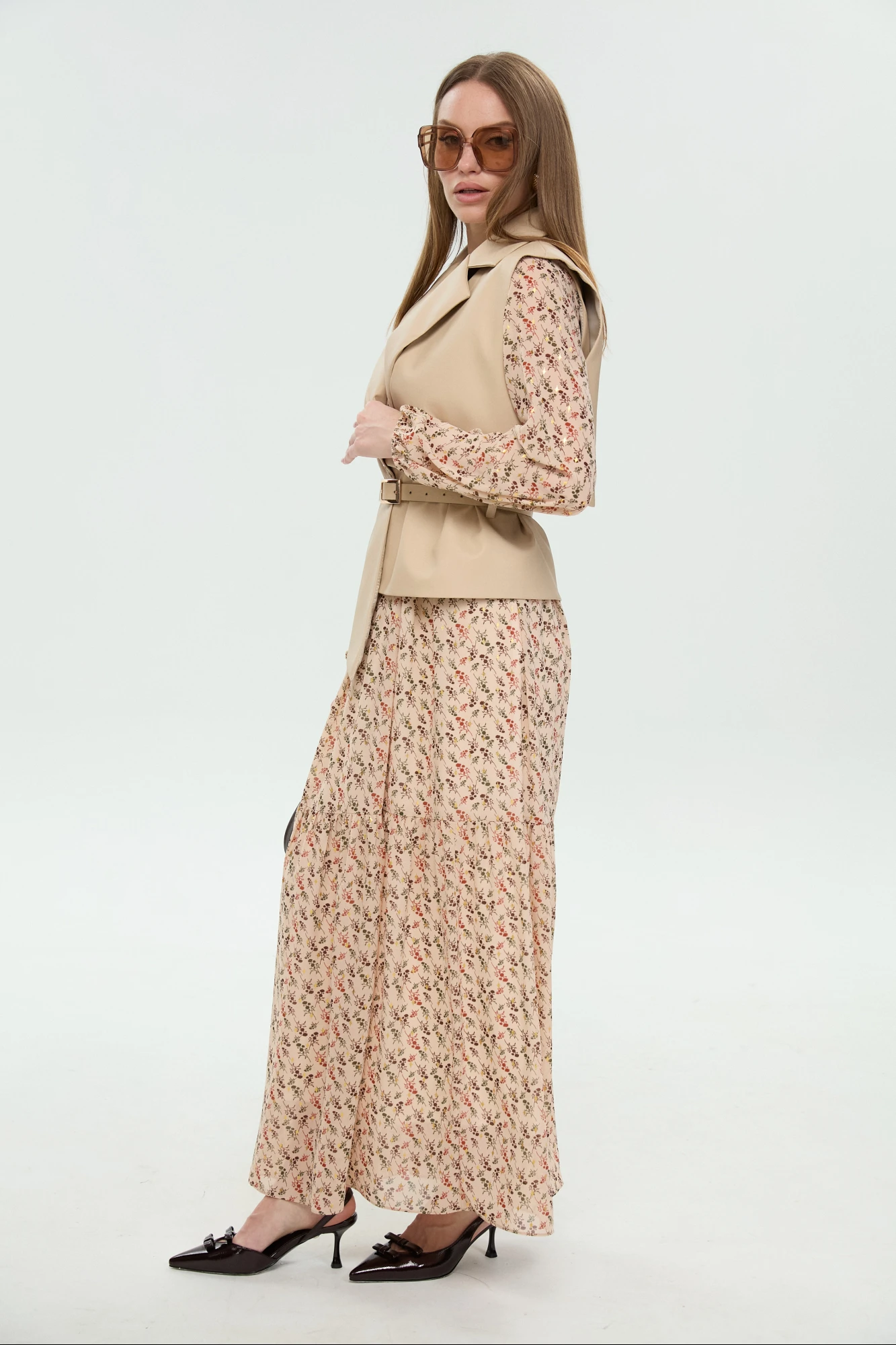 Костюм с платьем NikVa 1045-1 крем-брюле_и_бежевый_мультиколор двойка