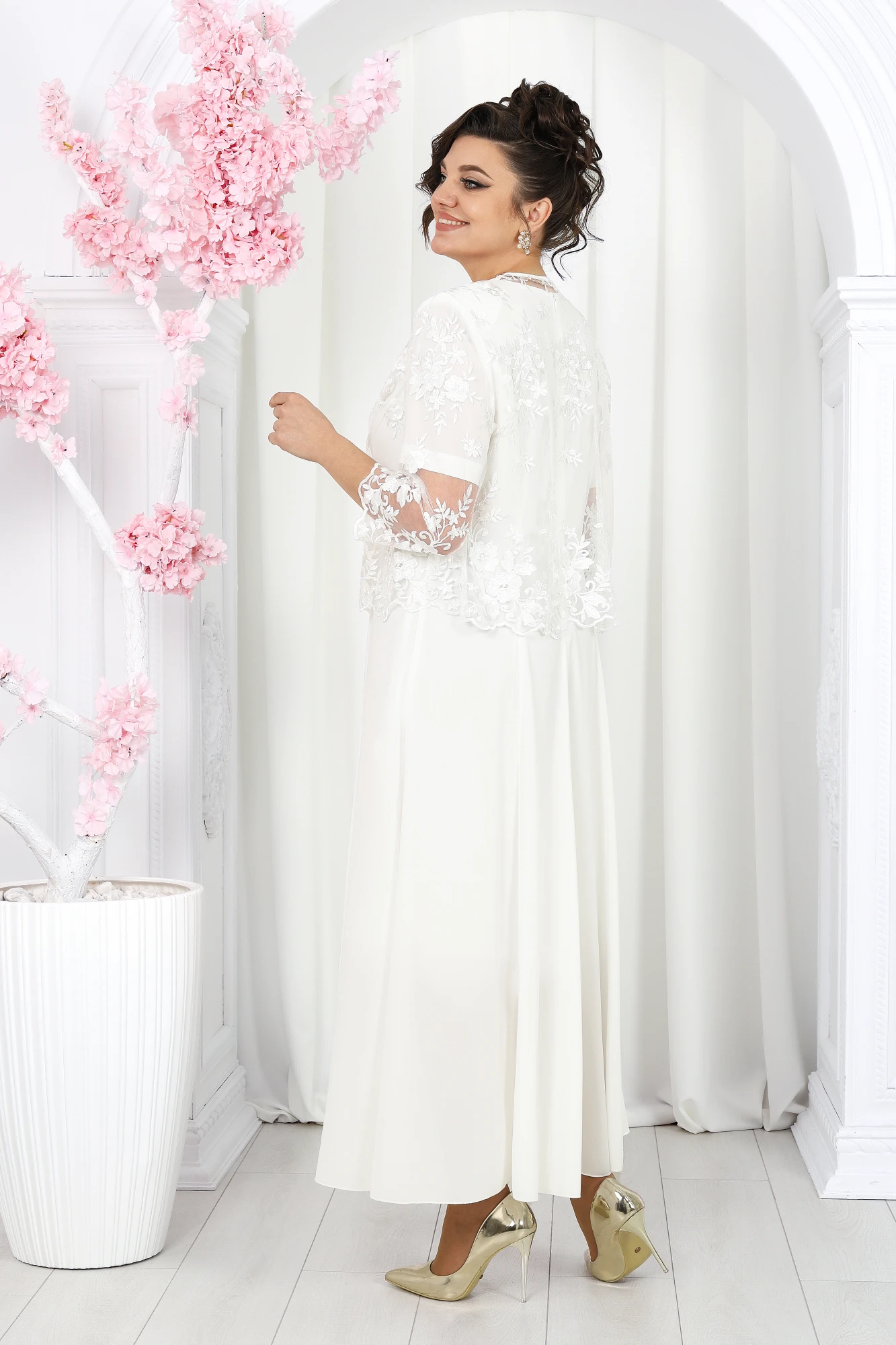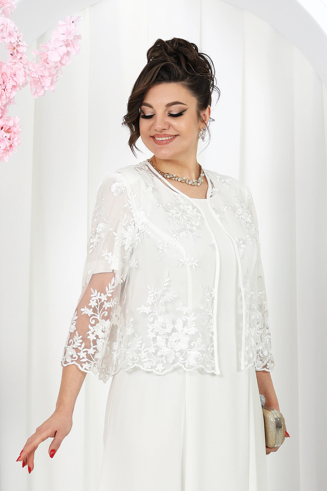 Костюм с платьем Нинель Шик 7489 двойка молочный