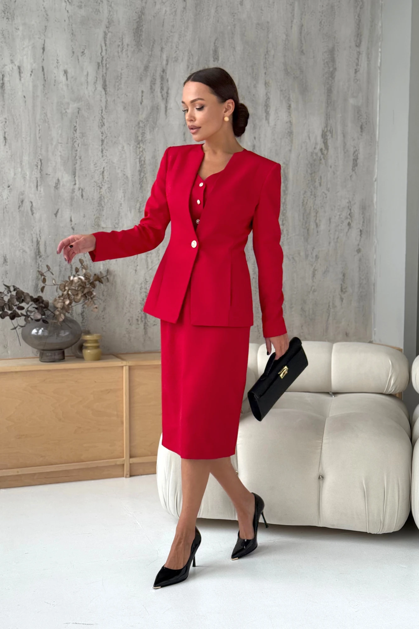 Костюм с платьем DilanaVIP 2106 красный двойка