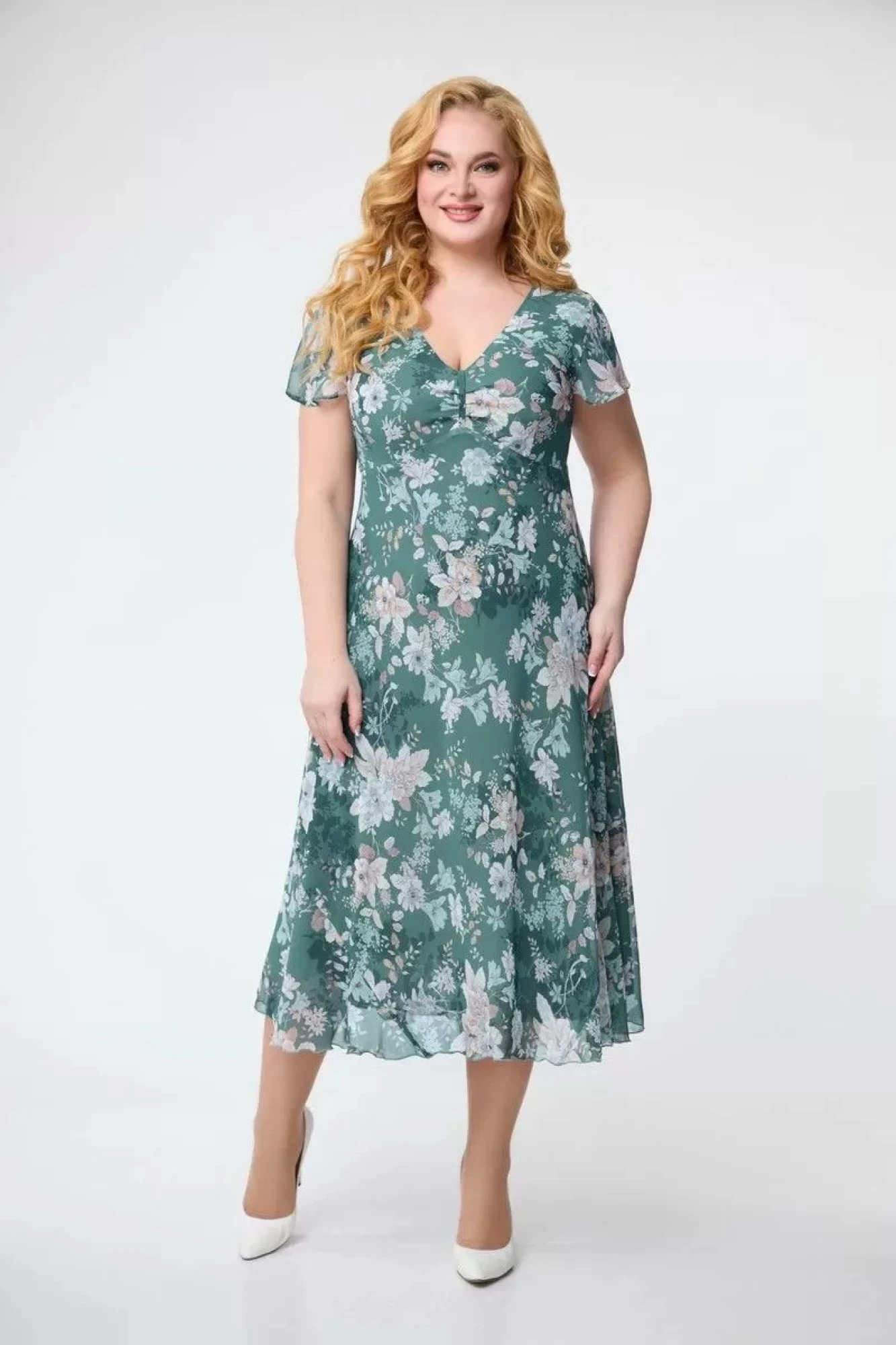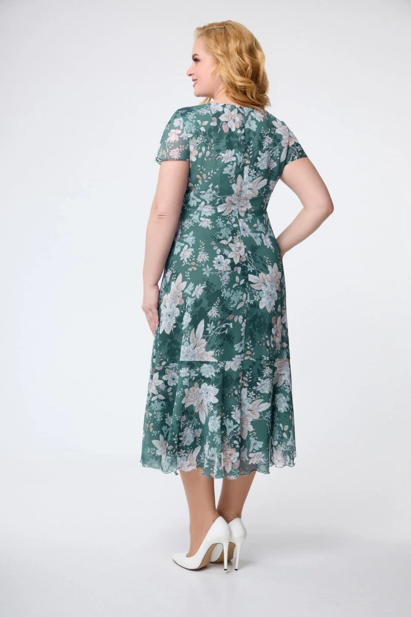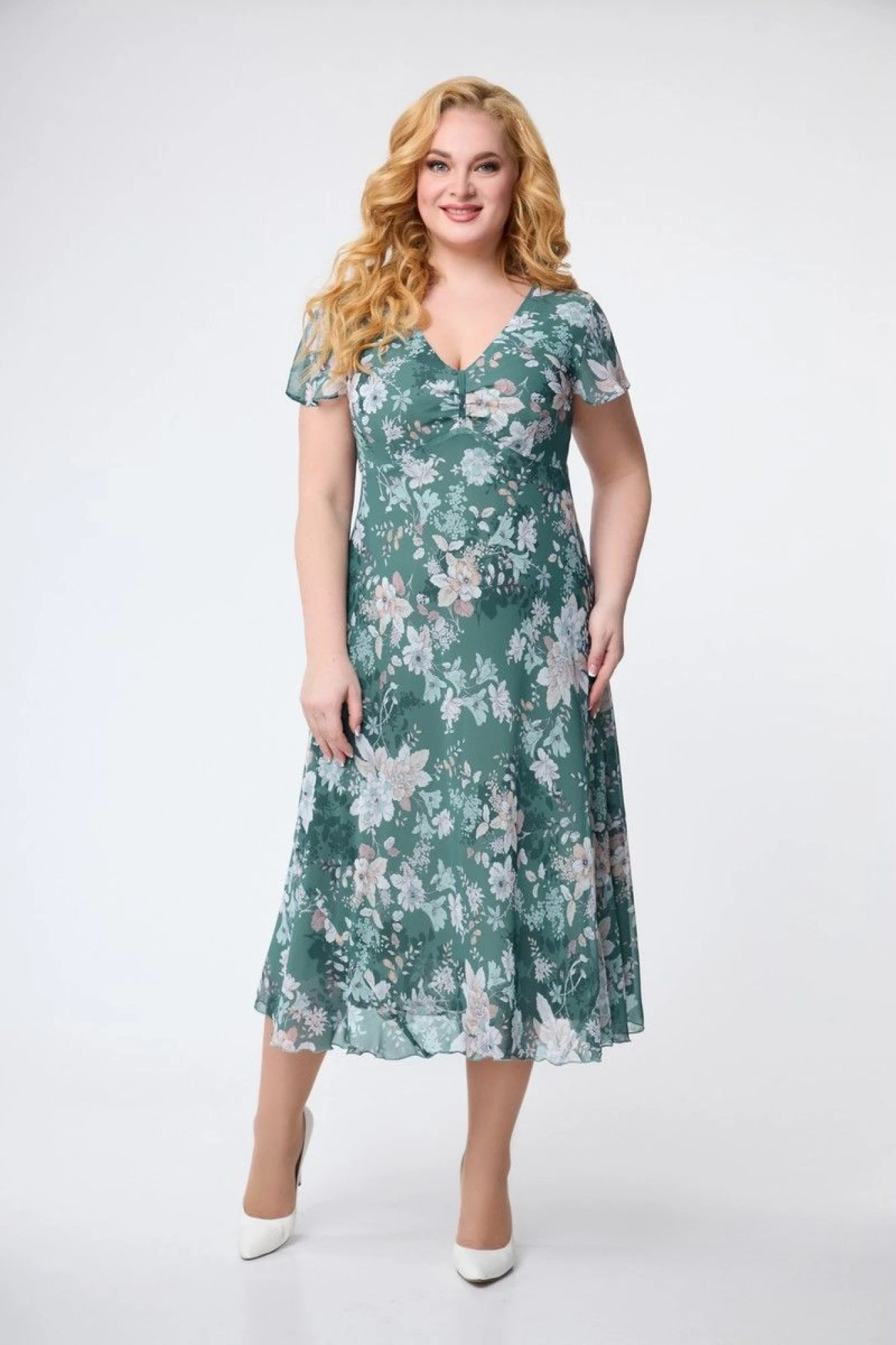 54,56,58,60Платье из шифона, на подкладке из шифона, А-образного силуэта, покрой юбки "по косой".
