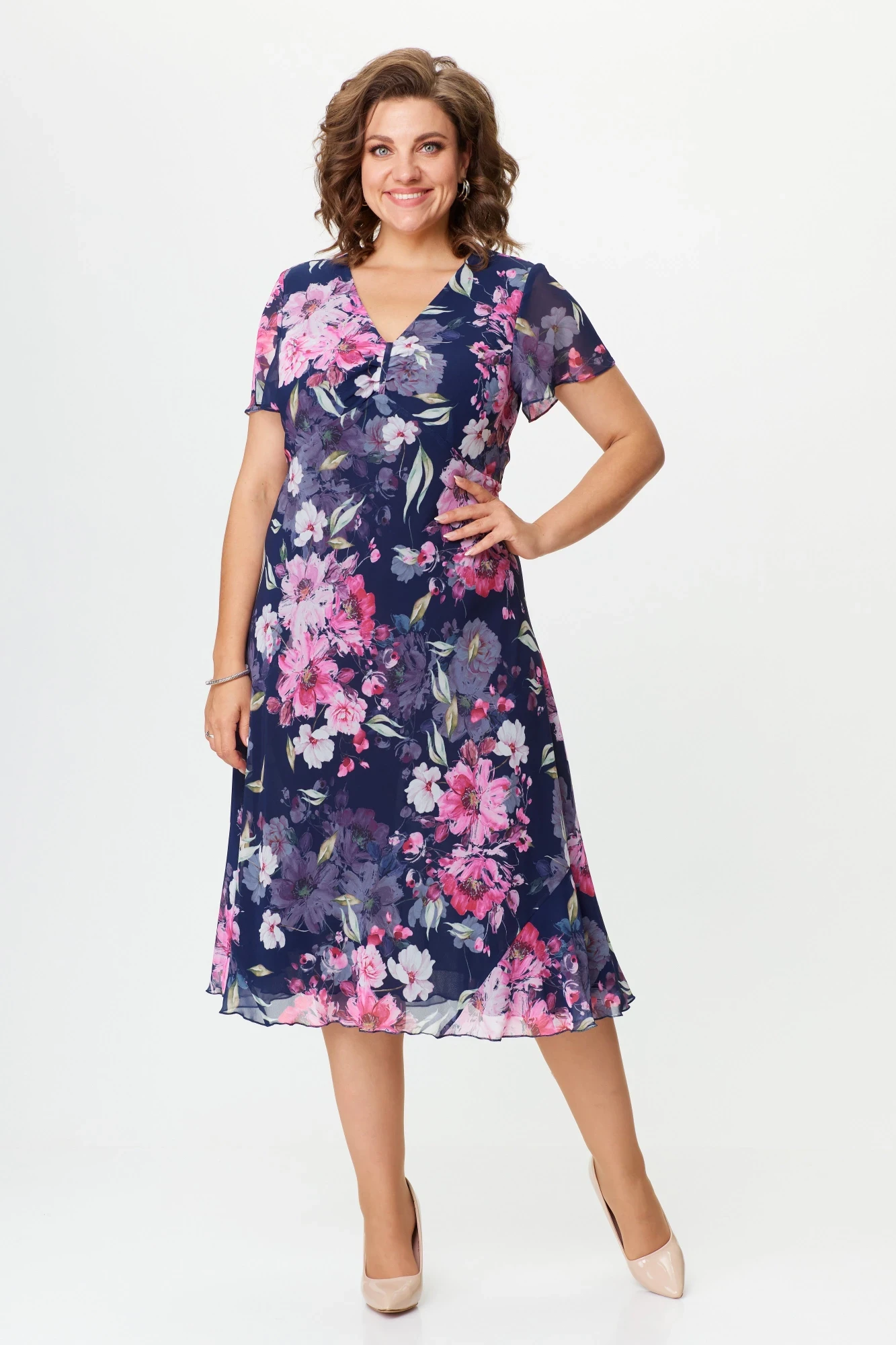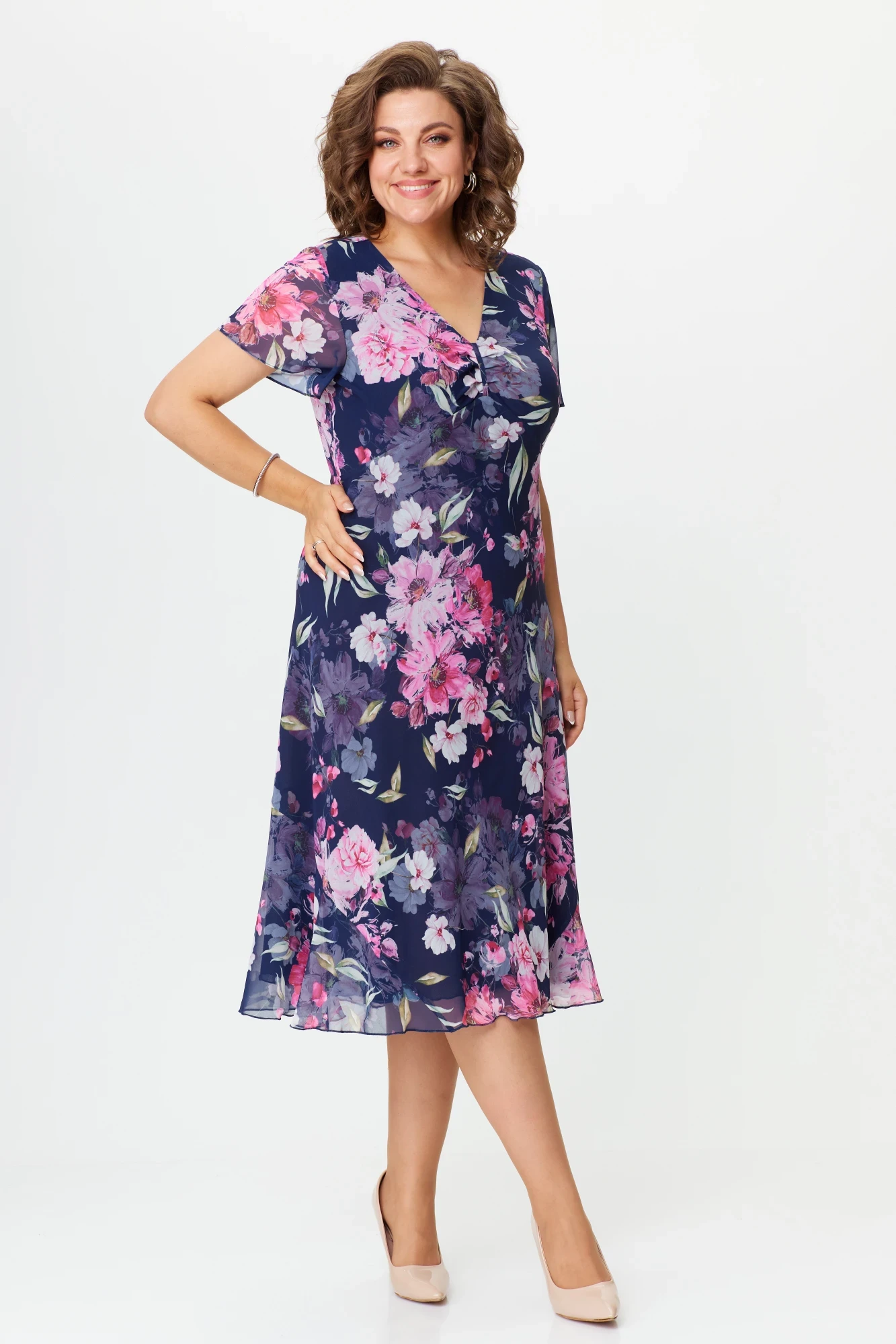 52,54, 56 ,58,60Платье выполнено шифона на шифоновой подкладке. А-образного силуэта, покрой юбки "по косой". По спинке в среднем шве застежка на молнию.