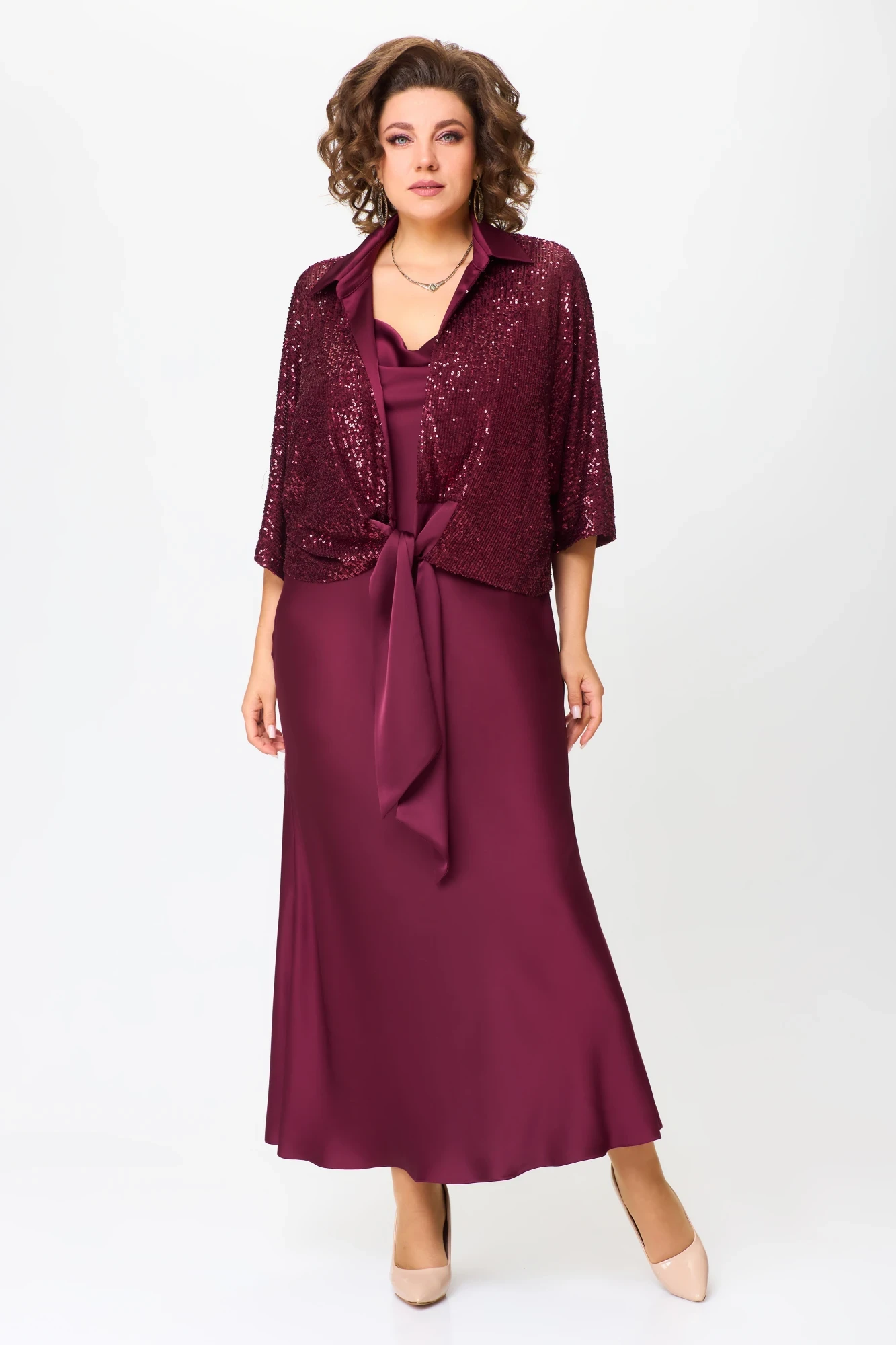 Жакет из пайеток с цельнокроенным рукавом «летучая мышь». По горловине воротник на стойке, без застежки. По низу переда завязки.