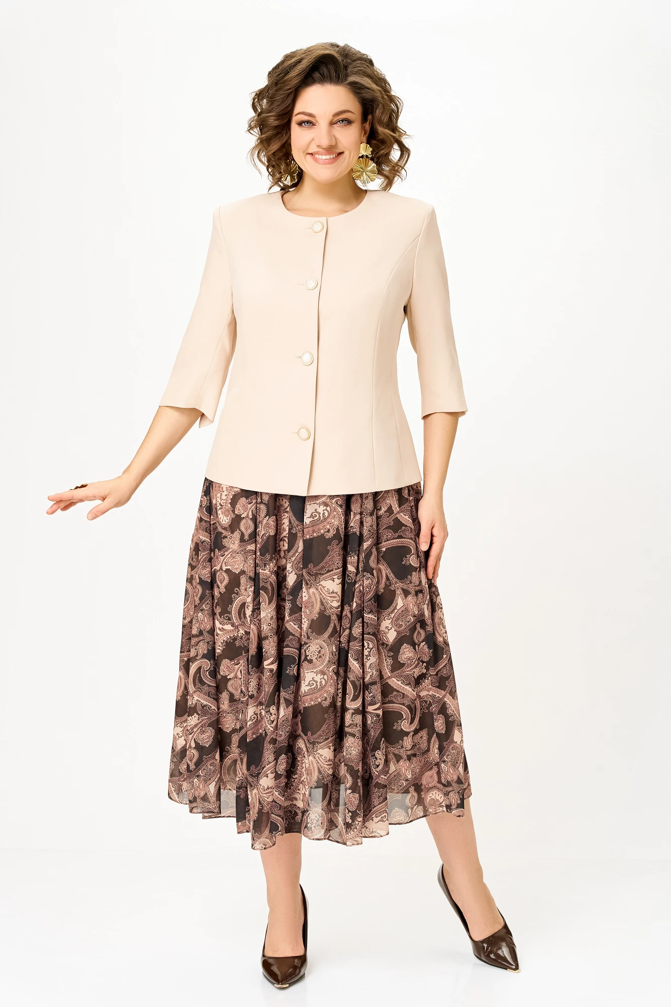 Костюм с платьем Swallow 914 Жакет: Светло-бежевый Платье: Коричнево-бежевый двойка