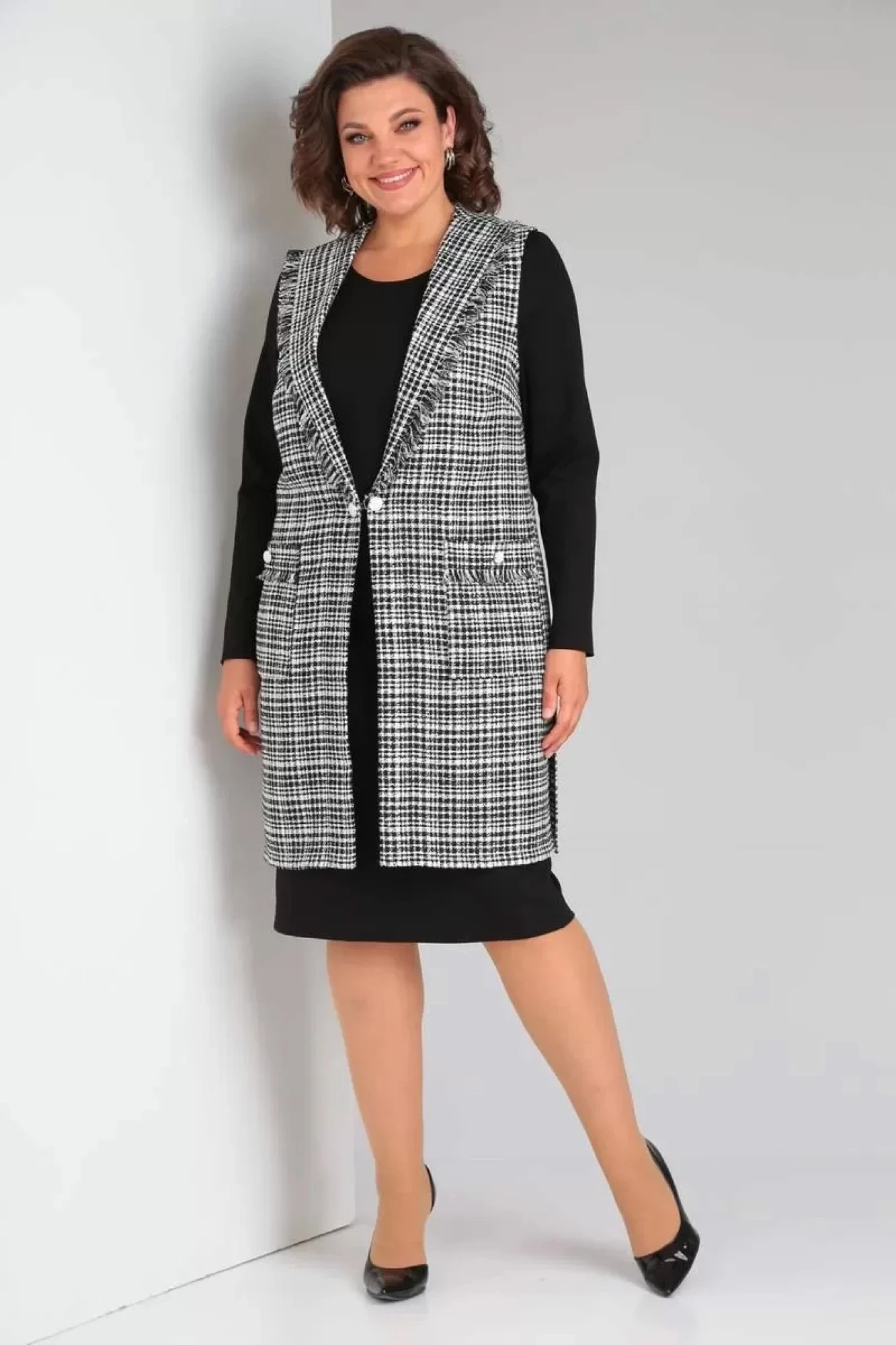 Длина платья: 110см. Длина рукава: 62см. Длина жилета: 95см.