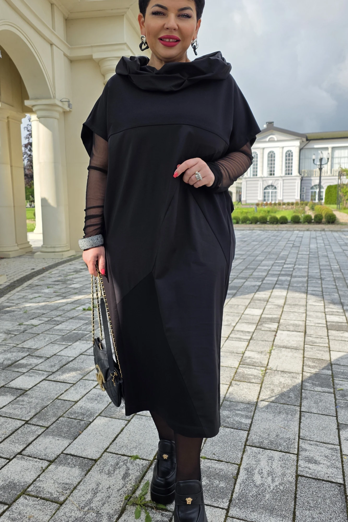 Длина платья от высшей точки плечевого шва до низа 115 см. Длина рукава блузона 66 см.