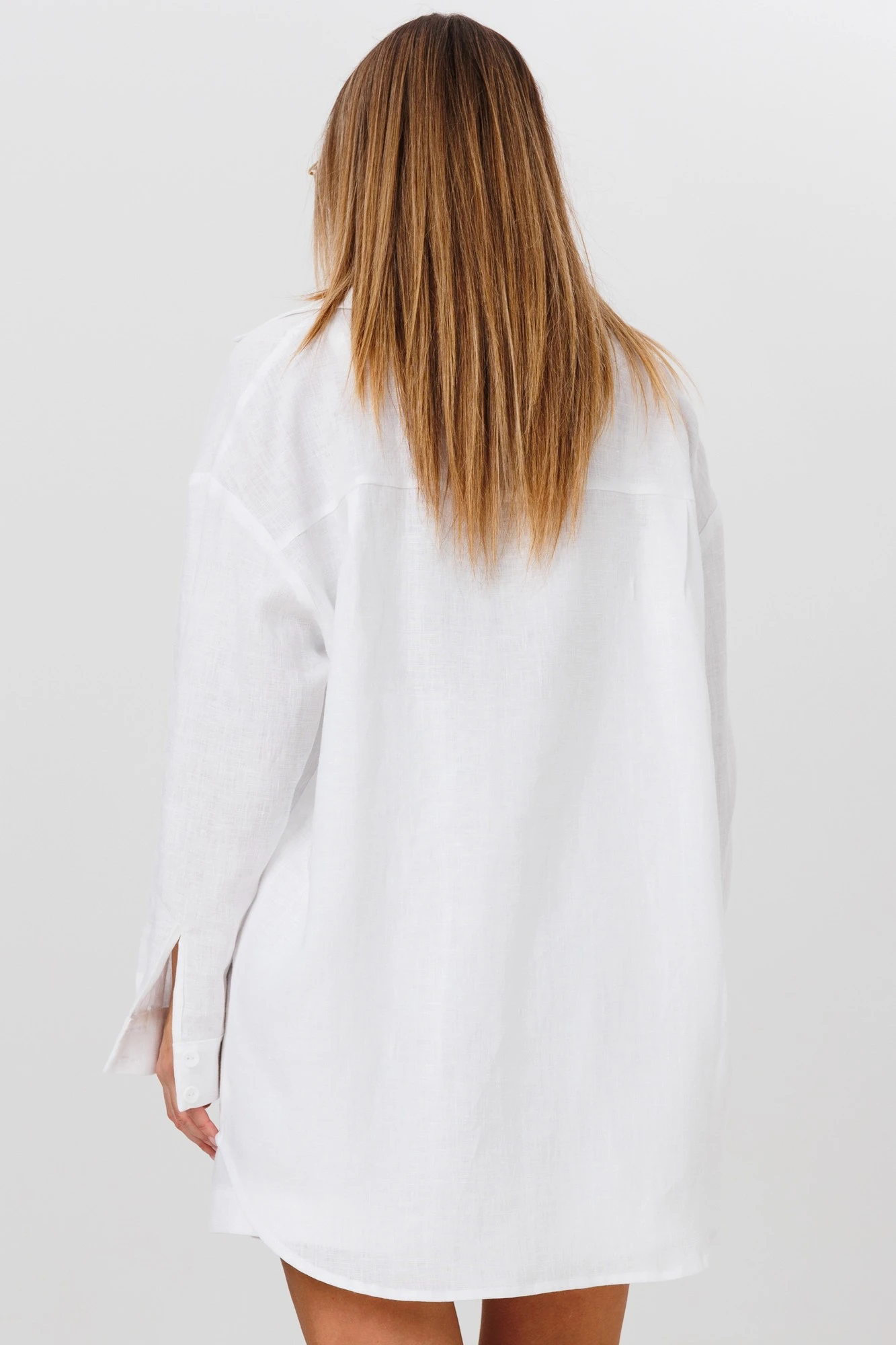 Рубашка свободного силуэта. Воротник рубашечного типа. Застежка центральная на петли и пуговицы. Рукав втачной, длинный, снизу рукава притачная манжета, застегивающаяся на петлю и пуговицу. Линия плеча спущена. Спинка с кокеткой. Низ фигурный с удлиненной спинкой.