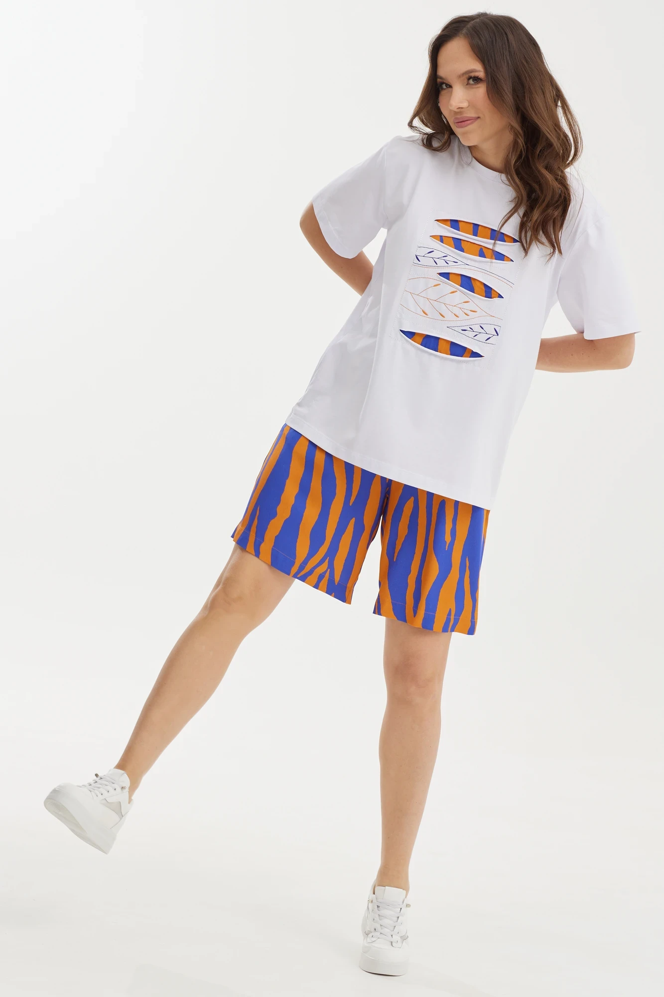 Костюм с шортами Магия Моды 2438 белый+синий+ оранж