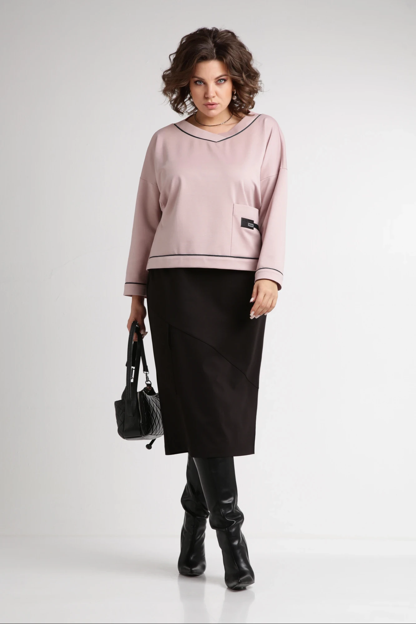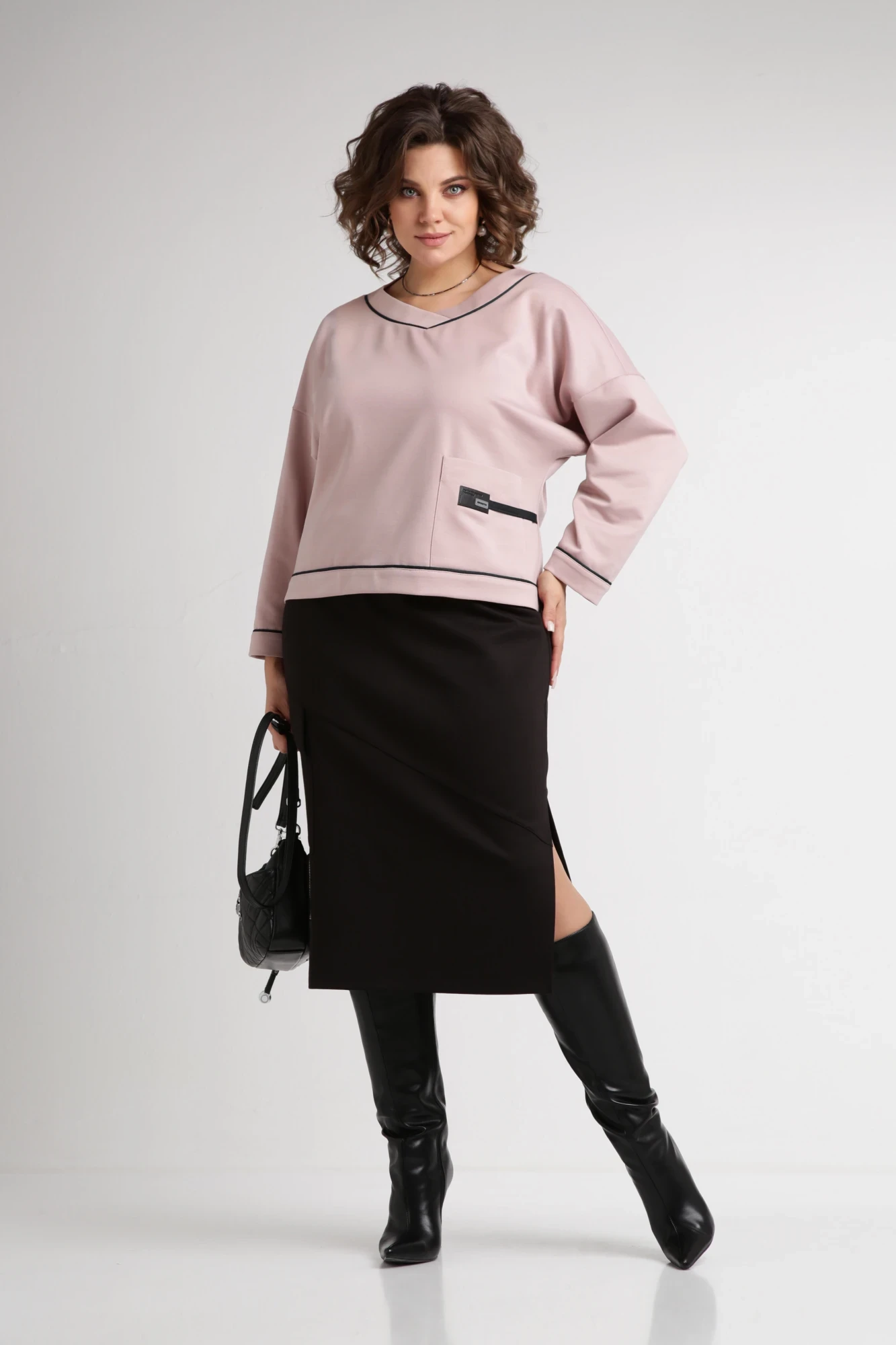Юбочный костюм AIRA style 24111 Пудра+синий двойка
