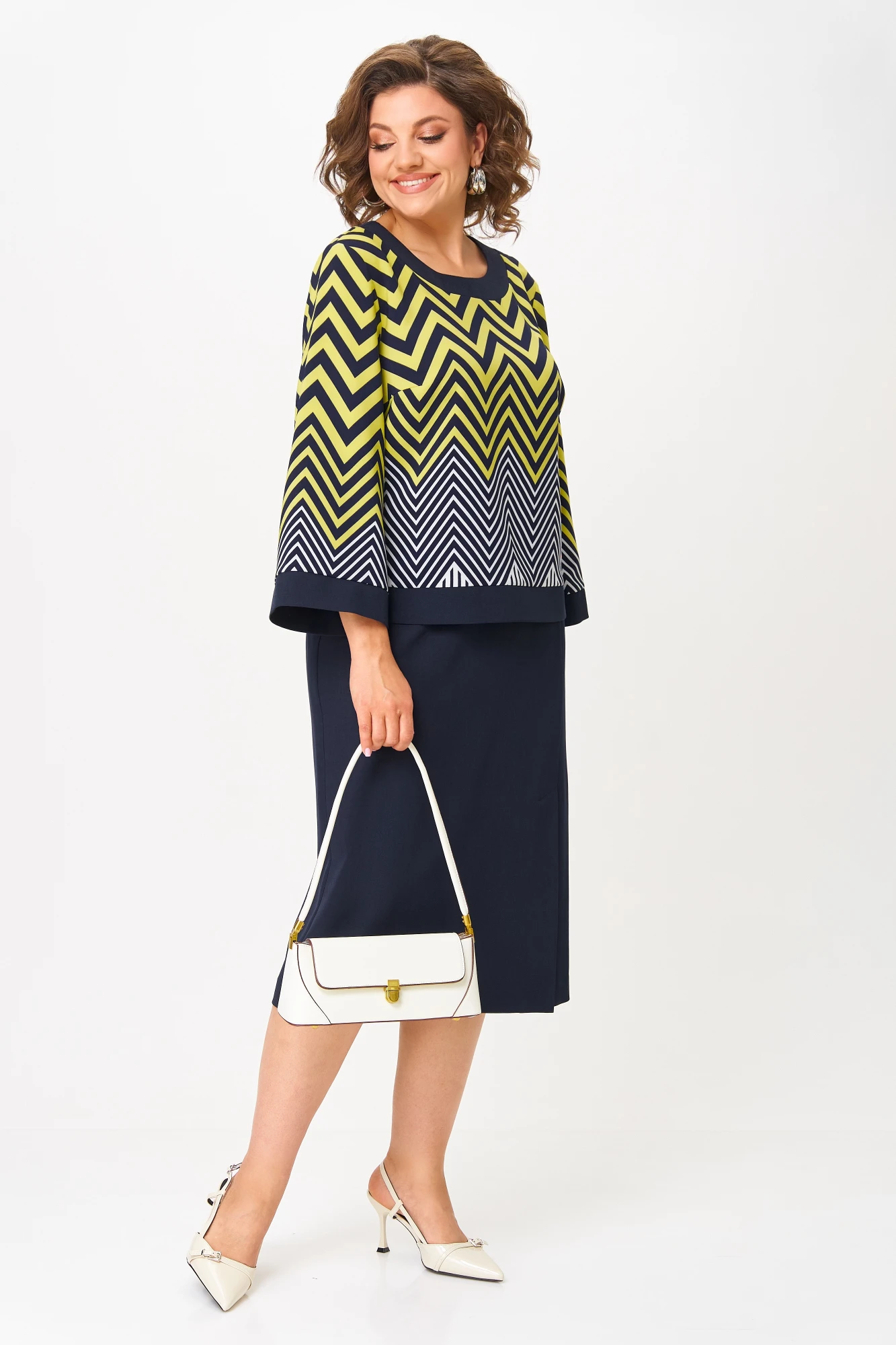 Юбочный костюм AIRA style 24126 лимонно-синий двойка