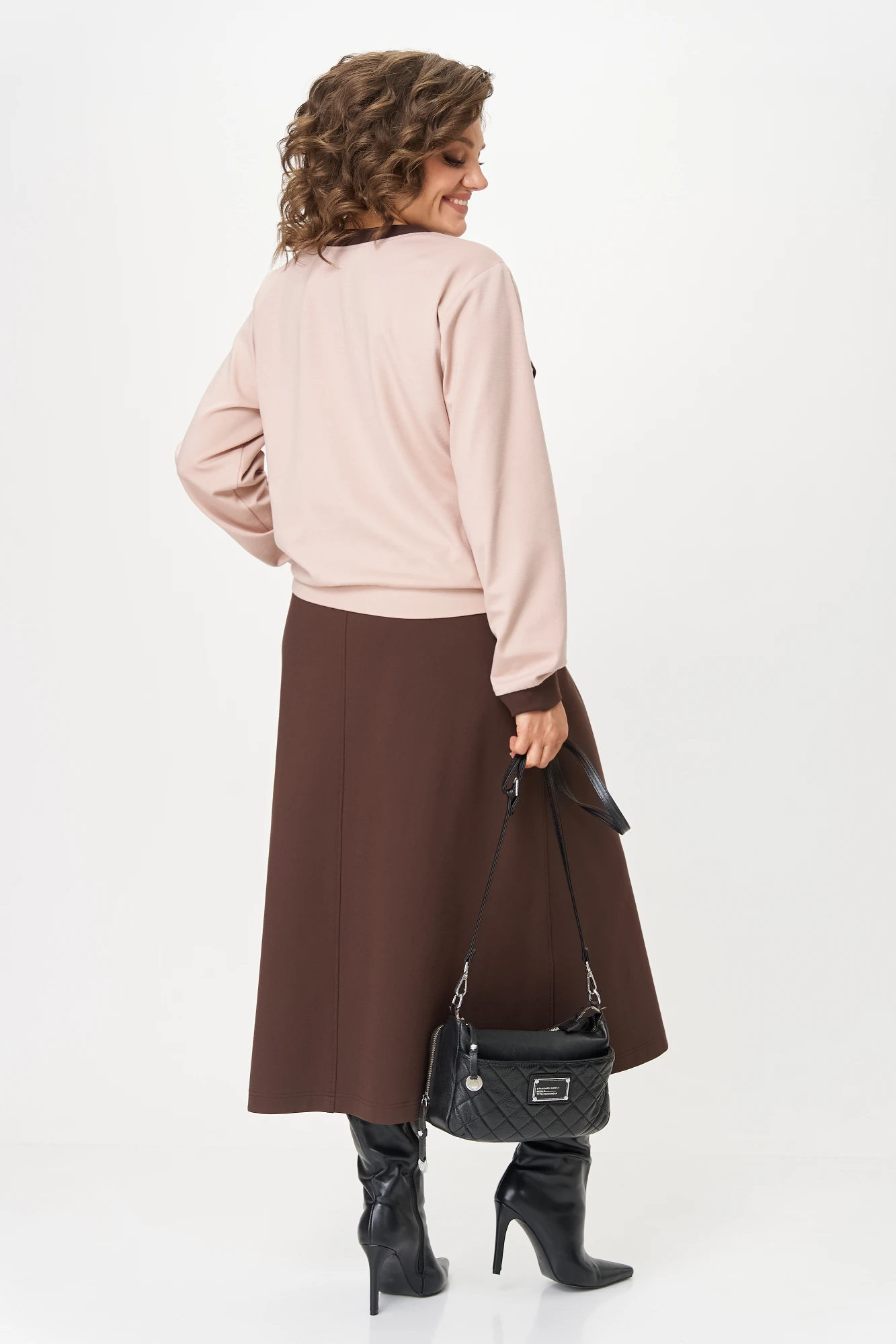 Юбочный костюм AIRA style 24129 пудра+коричневый двойка