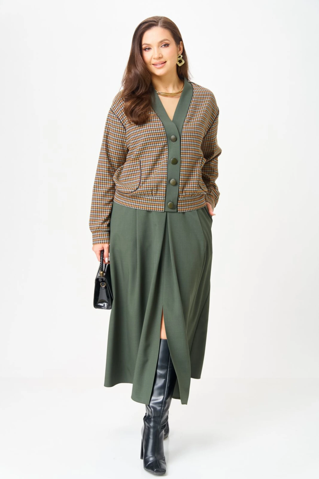 Юбочный костюм AIRA style 24131-1 зеленый двойка