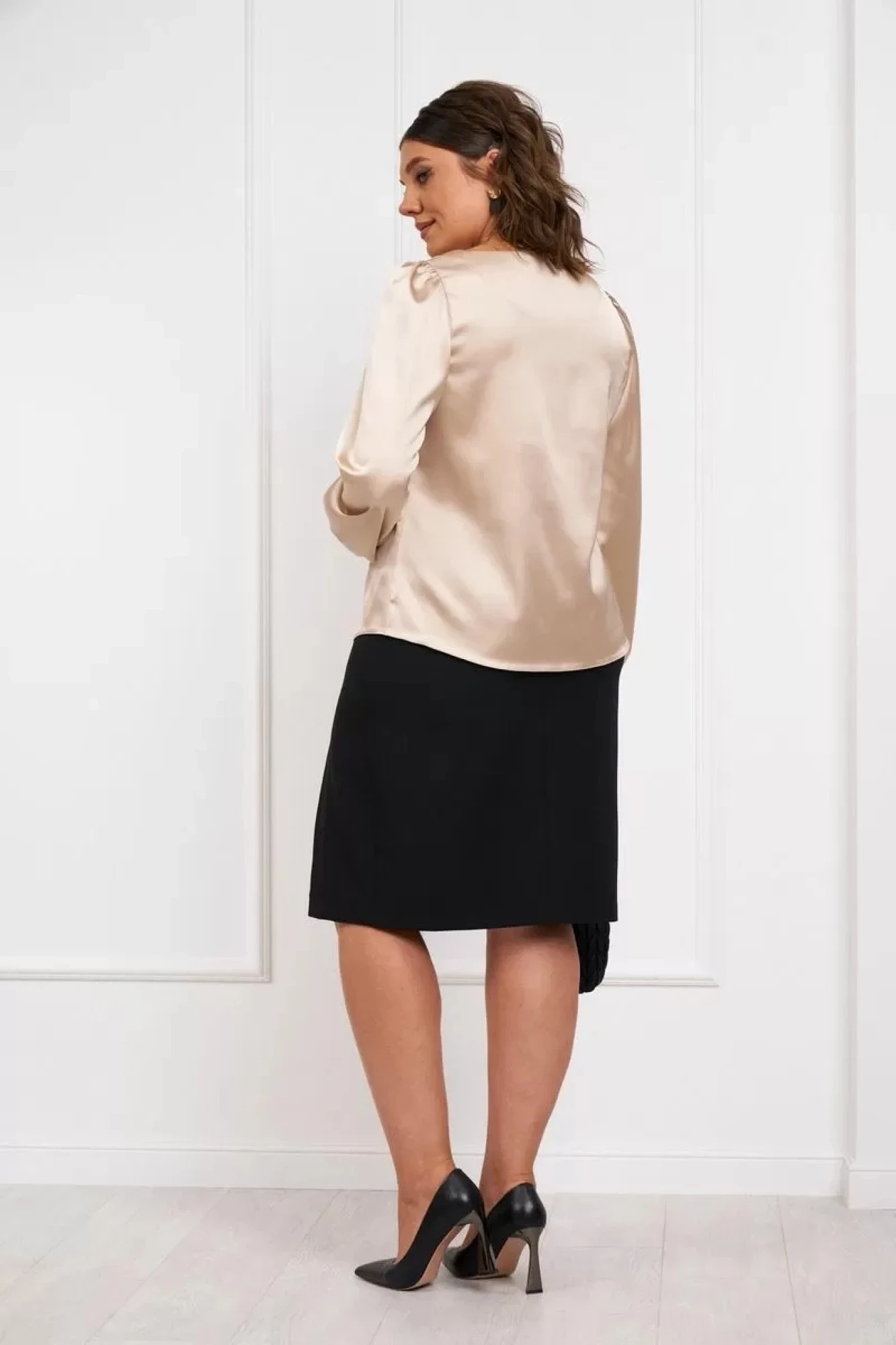 Юбочный костюм Almirastyle 328 бежевый,черный двойка