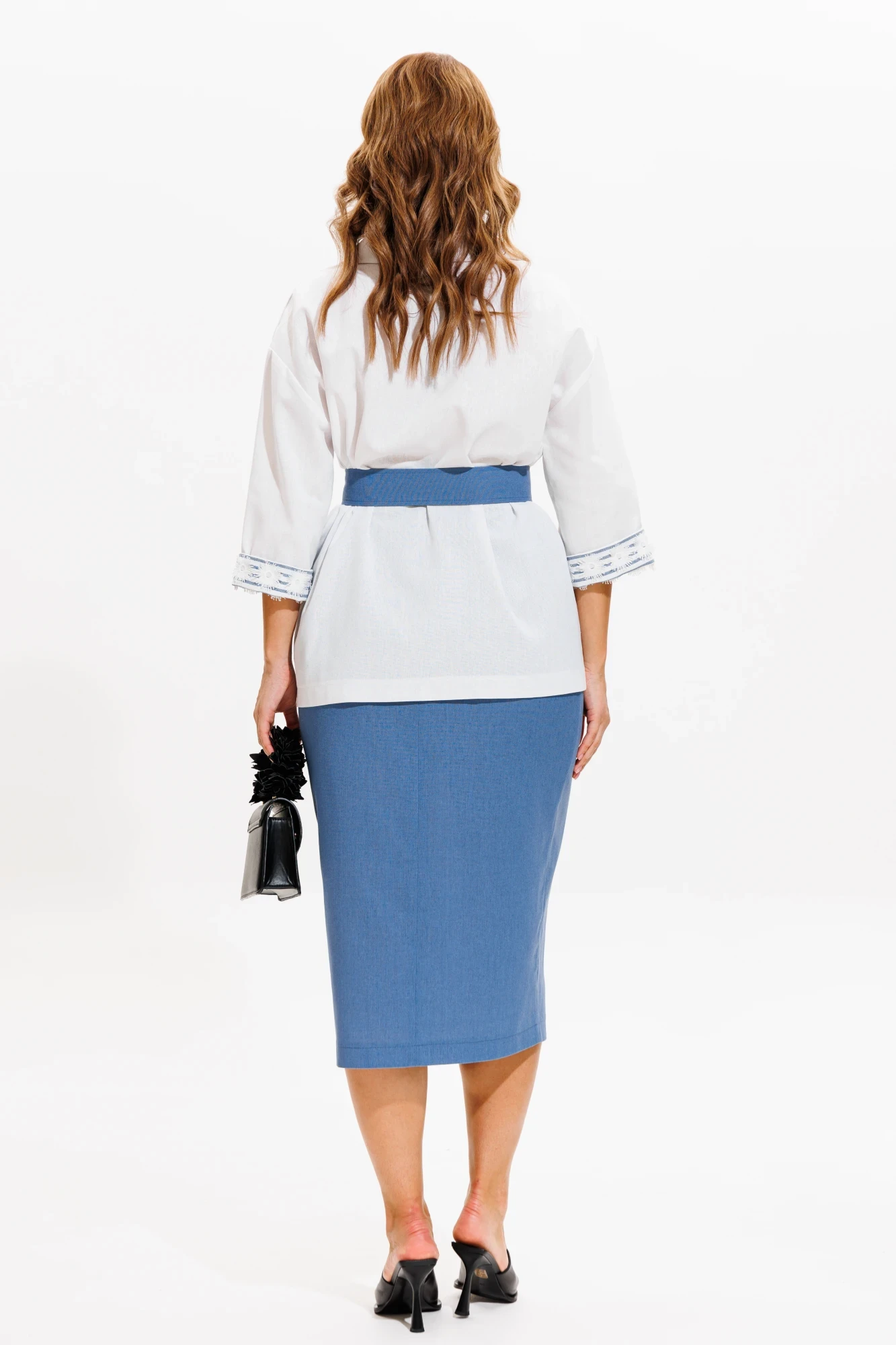 Юбочный костюм Anastasia 1083 белый/денимй двойка