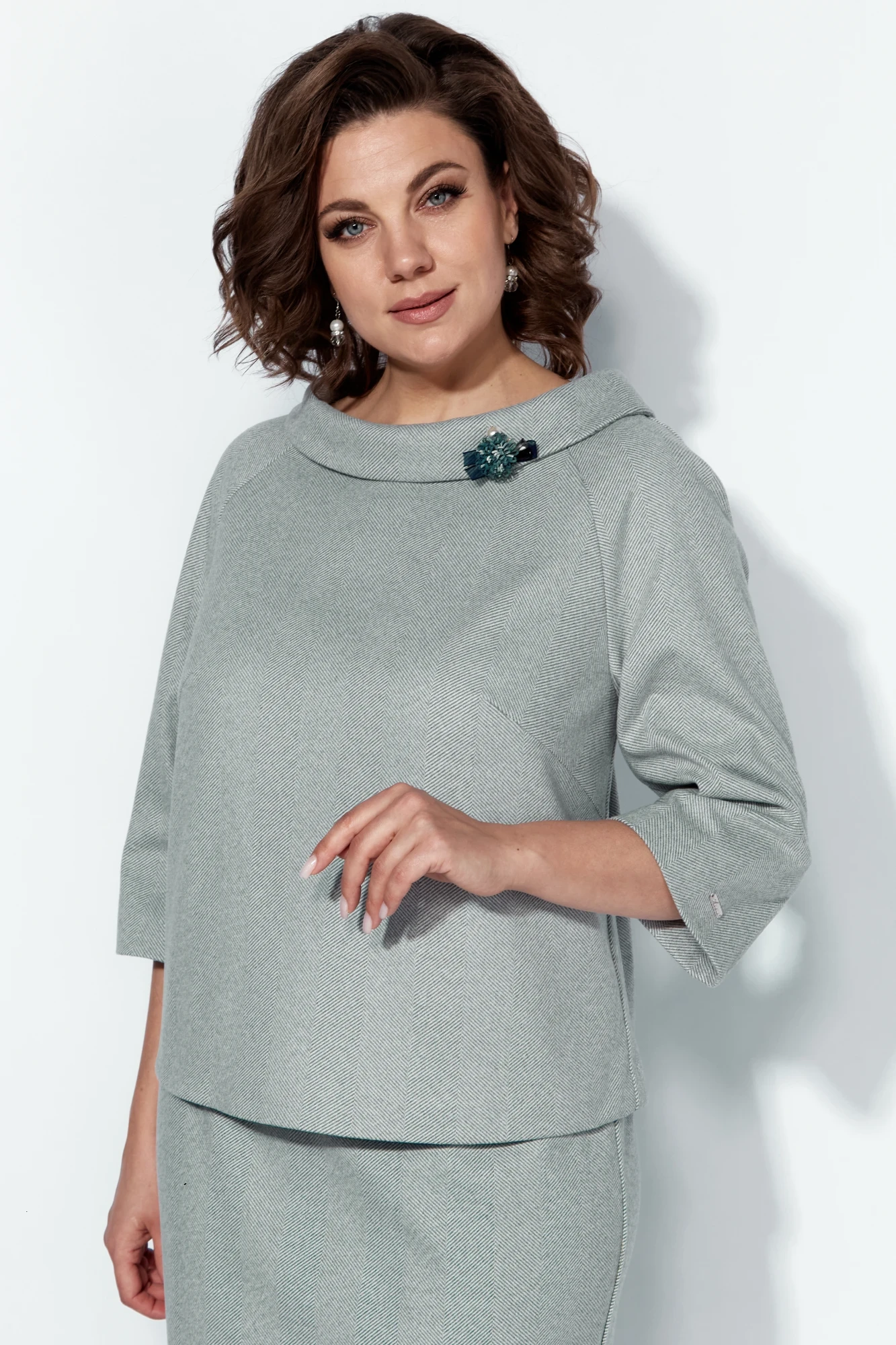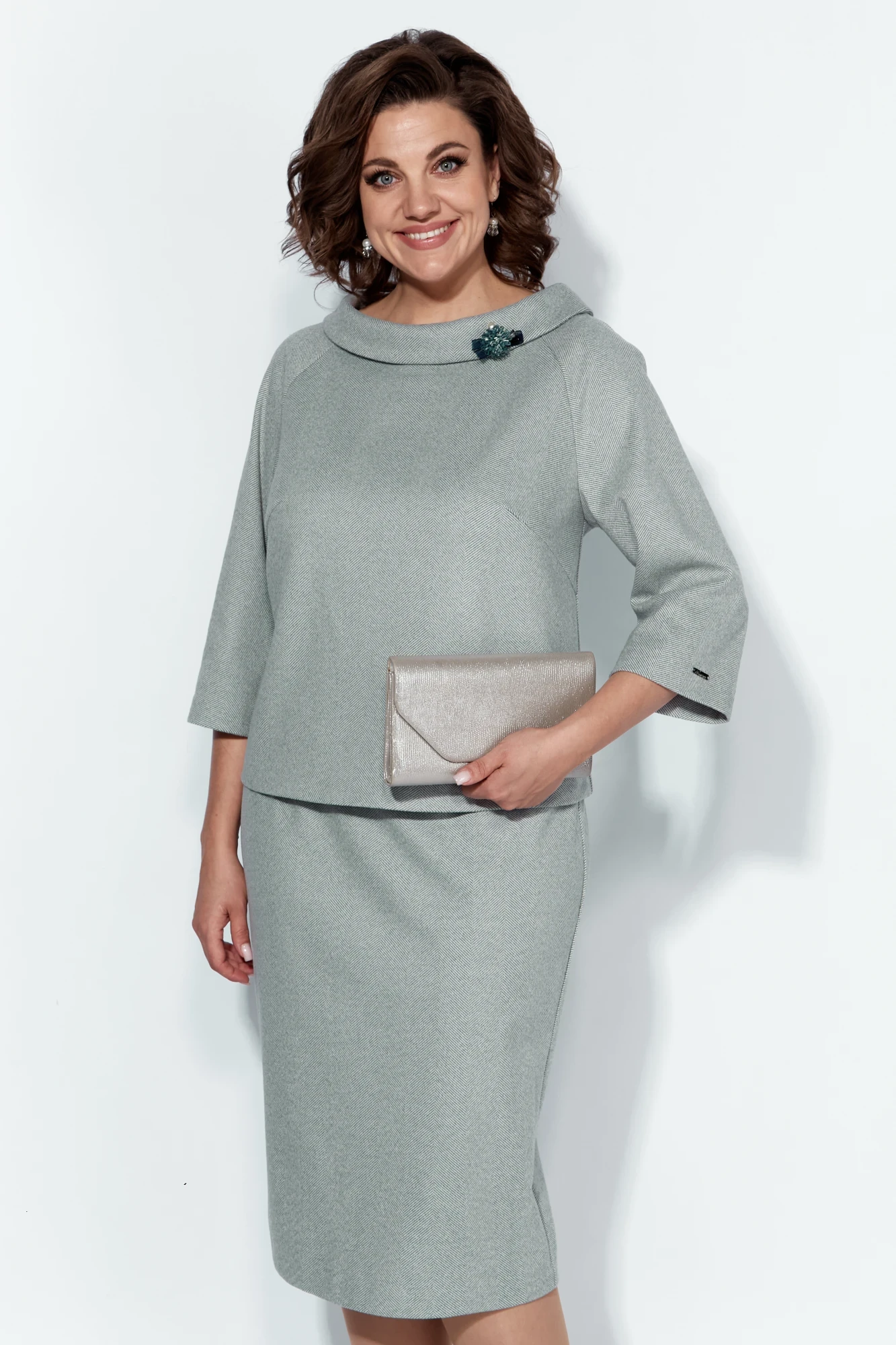 Юбочный костюм Anastasia 1163 оливково-серый двойка