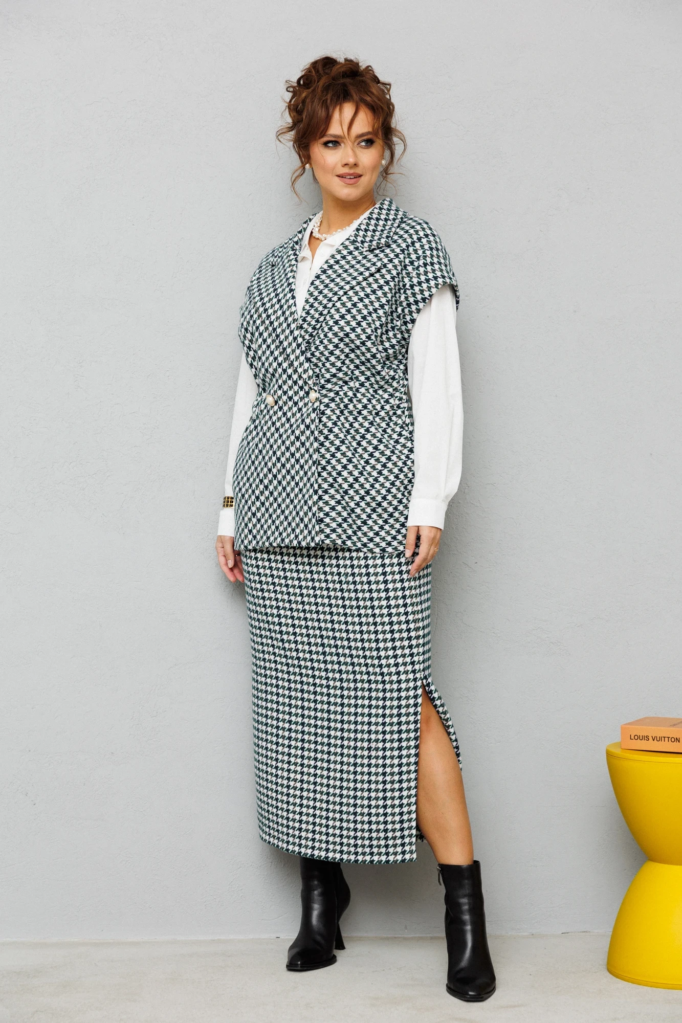 Юбочный костюм Anastasia 1173 молочно-зеленый (гусиная лапка) двойка