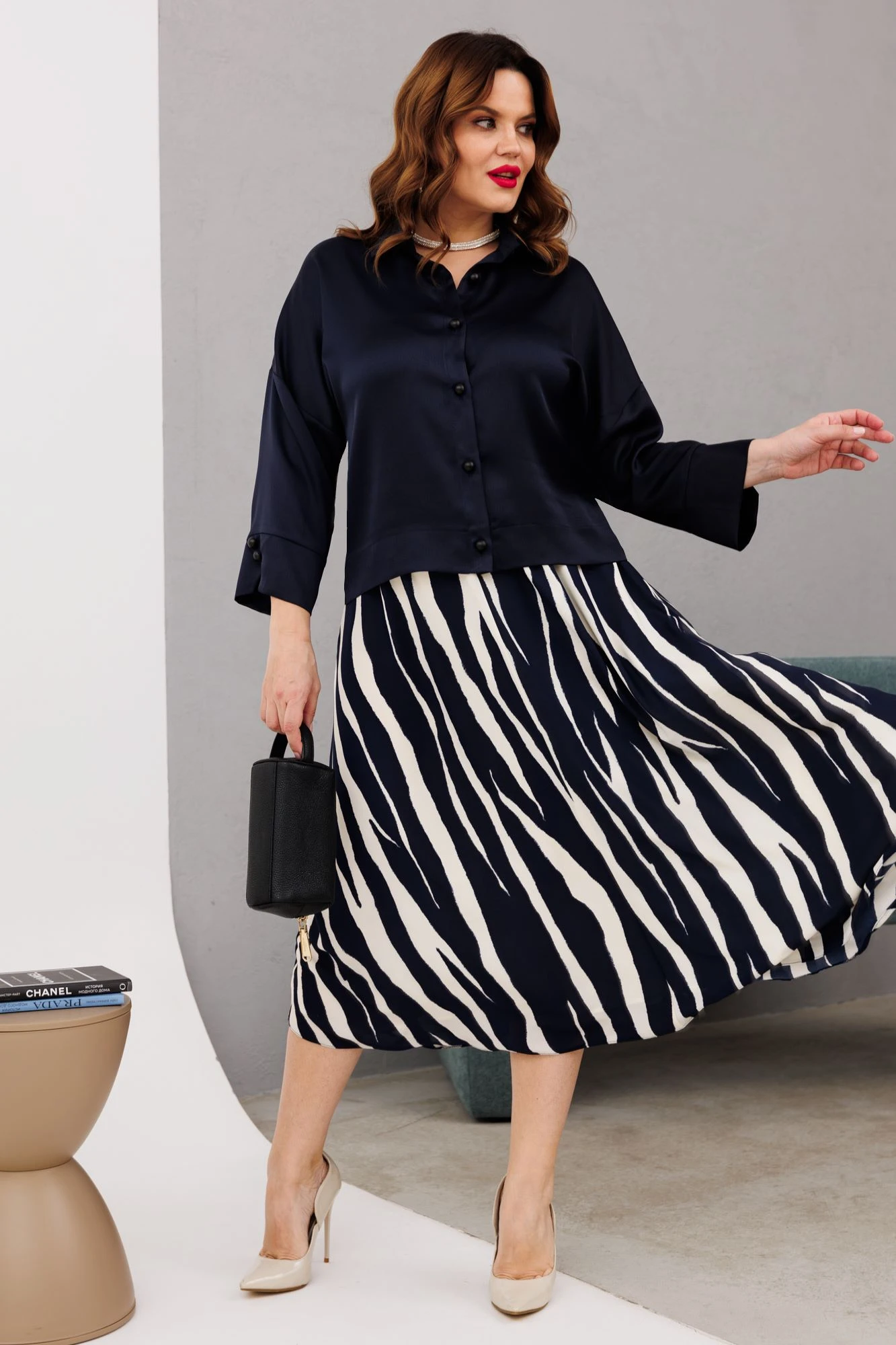 Юбочный костюм Anastasia 1196 синий/молочный двойка