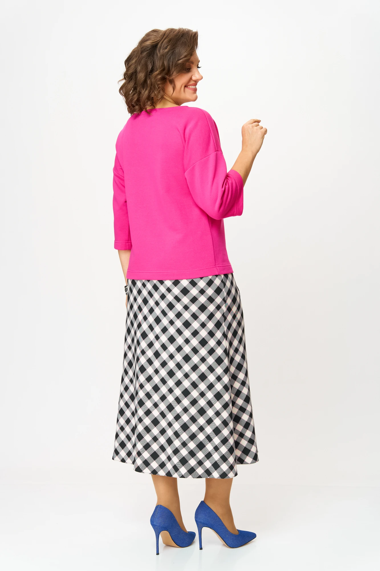 Юбочный костюм Anastasia 1266 розовый/клетка двойка
