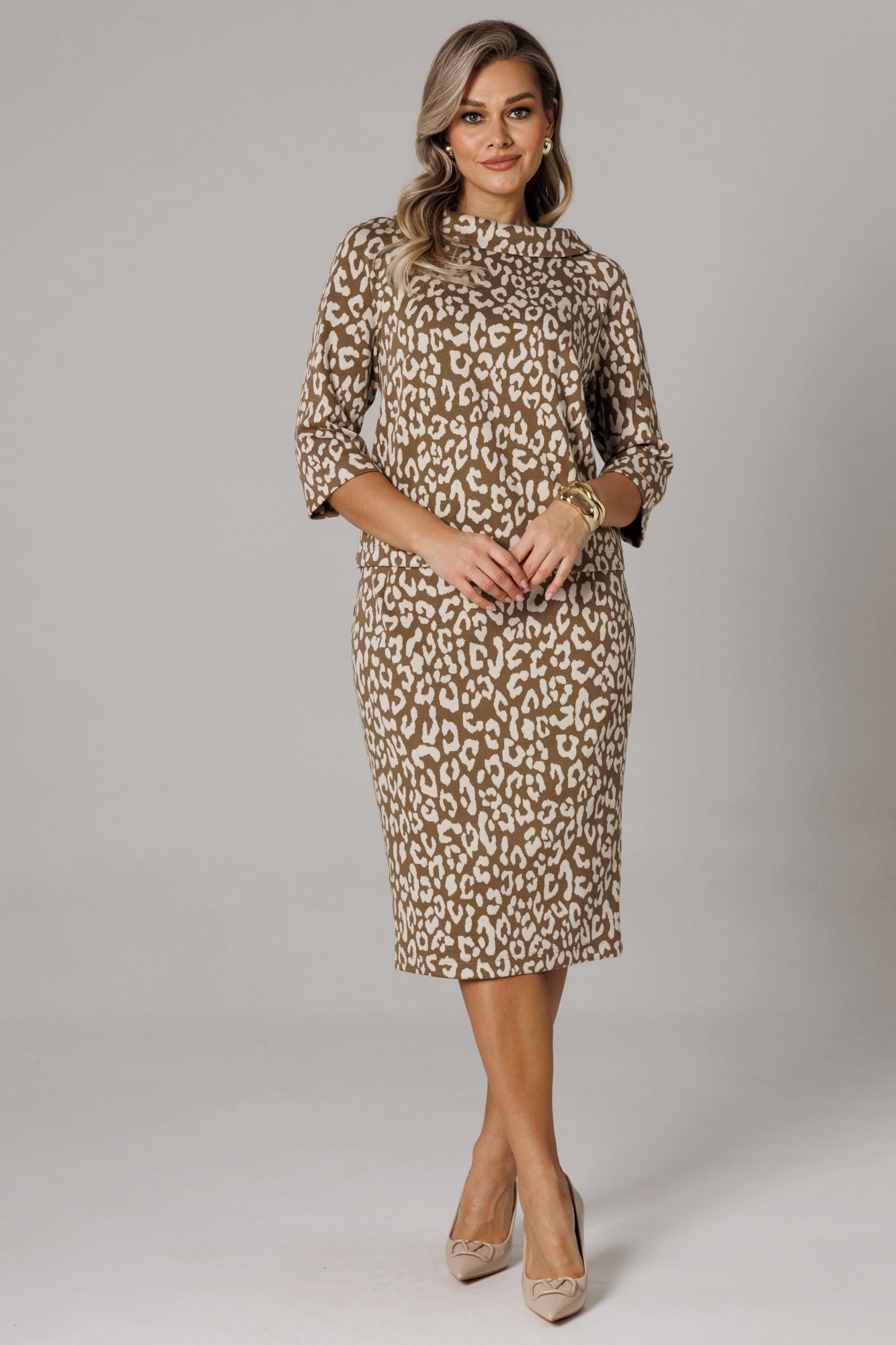 Юбочный костюм Anastasia 1303 кофейный (анималистический принт) двойка