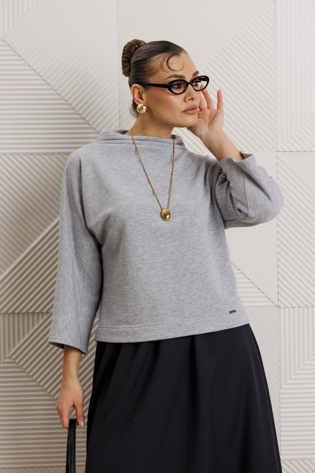 Юбочный костюм Anastasia 1319 серый меланж/графит двойка