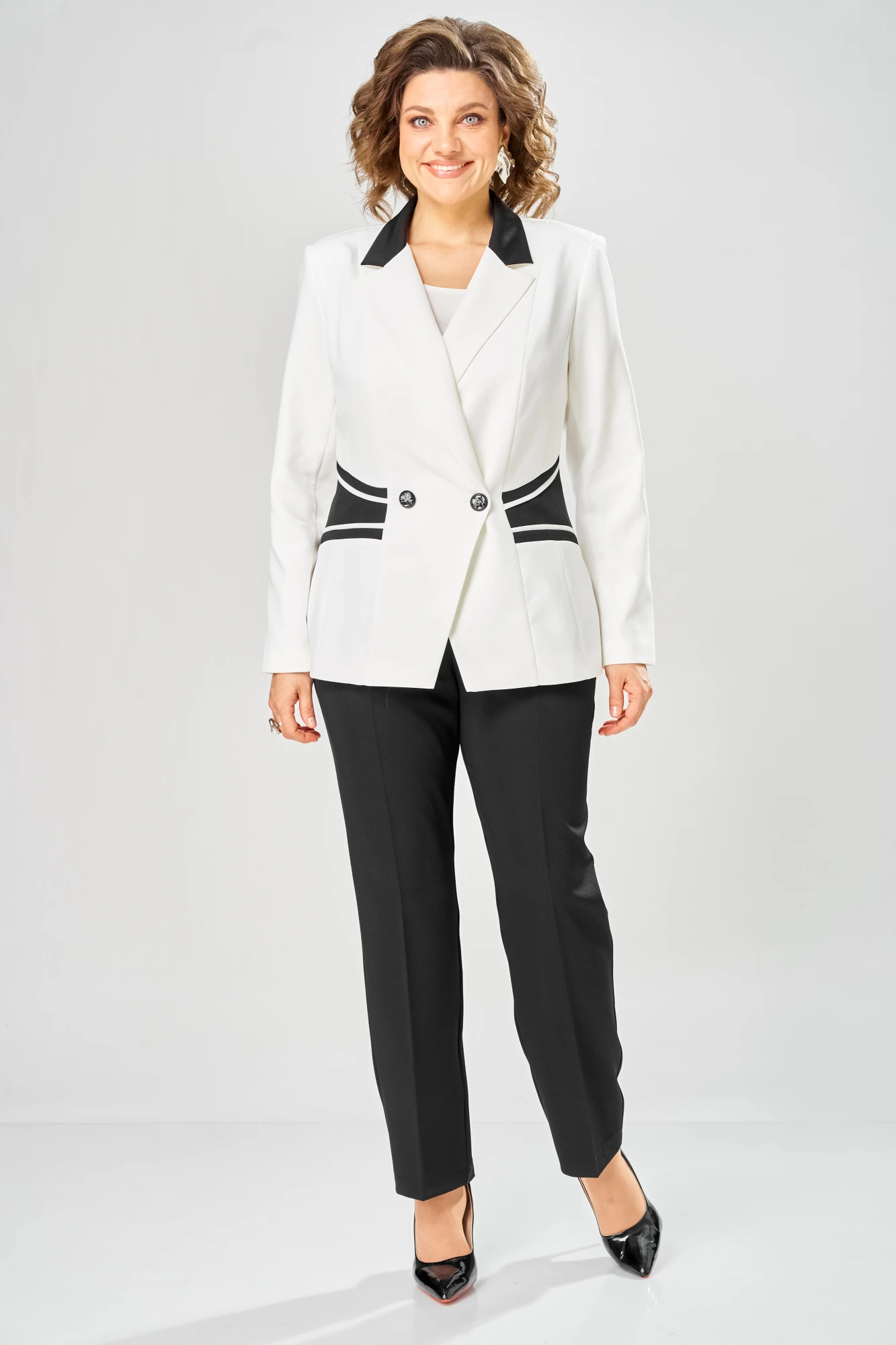 Юбочный костюм Anastasia Mak 1315 черный+молочный двойка