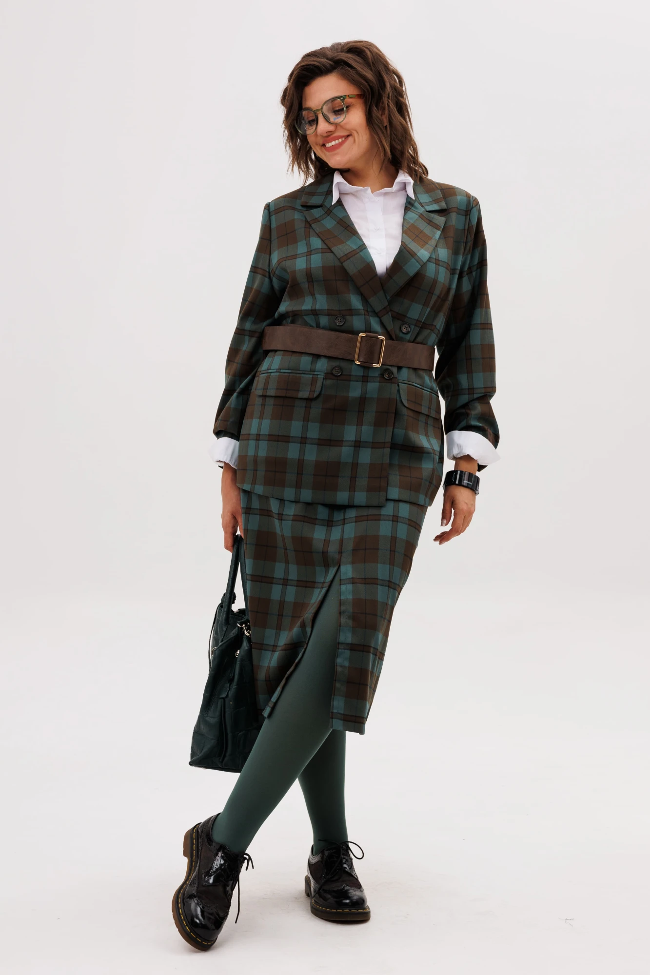 Актуальная клетка этой модели обеянна стать фаворитом на сезоны вперед. Универсальная расцветка выгодно подчеркнет достоинства любой фигуры, открывая безграничные возможности для создания разнообразных образов — от деловых до повседневных. Этот костюм не просто вещь в гардеробе, а инвестиция в ваш уникальный стиль, позволяющий каждый день выглядеть по-новому. Смело выбирайте его, чтобы быть в центре внимания. Костюм укомплектован ремнем.