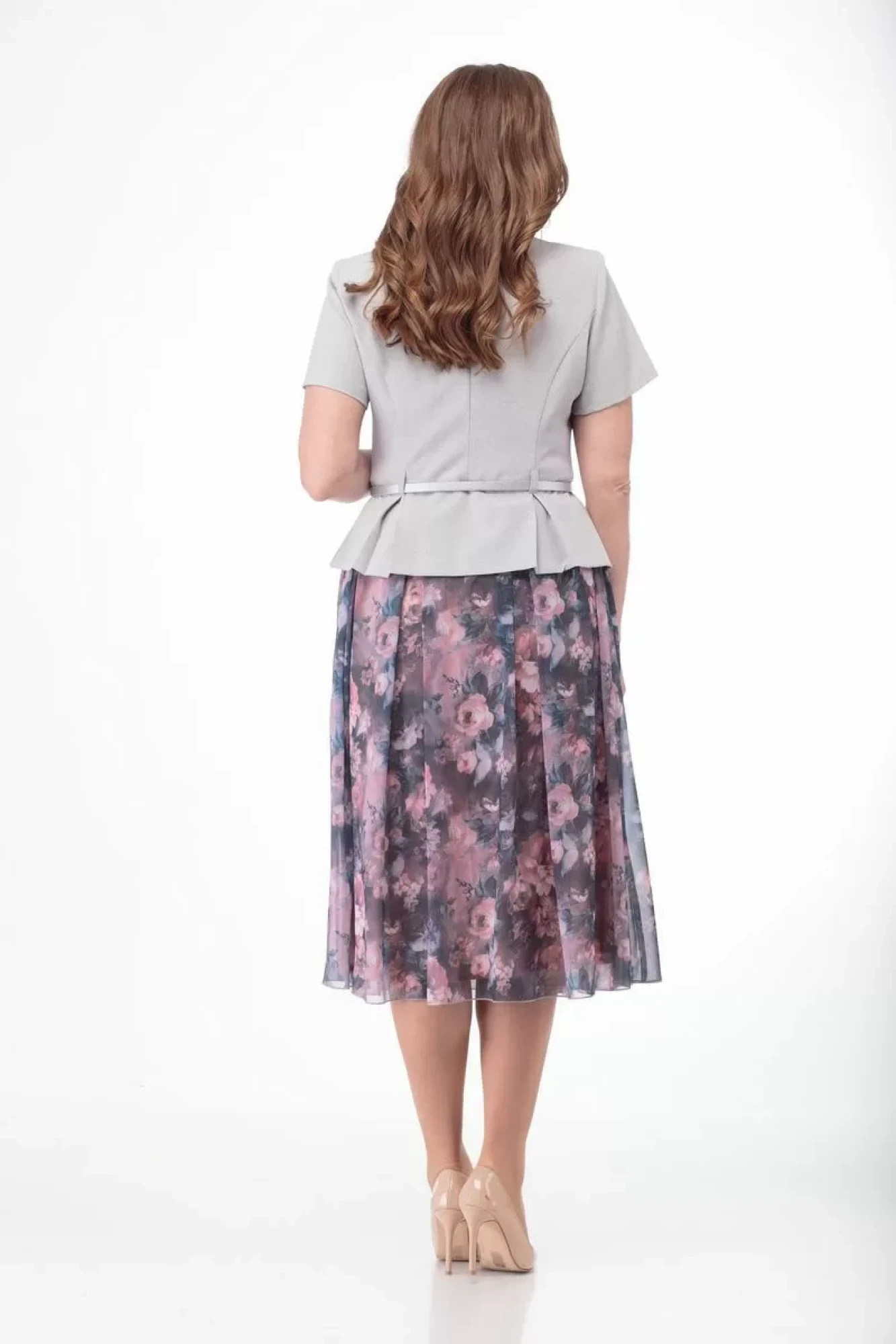Комплект с шифоновой юбкой Anelli 690 серый+пионы